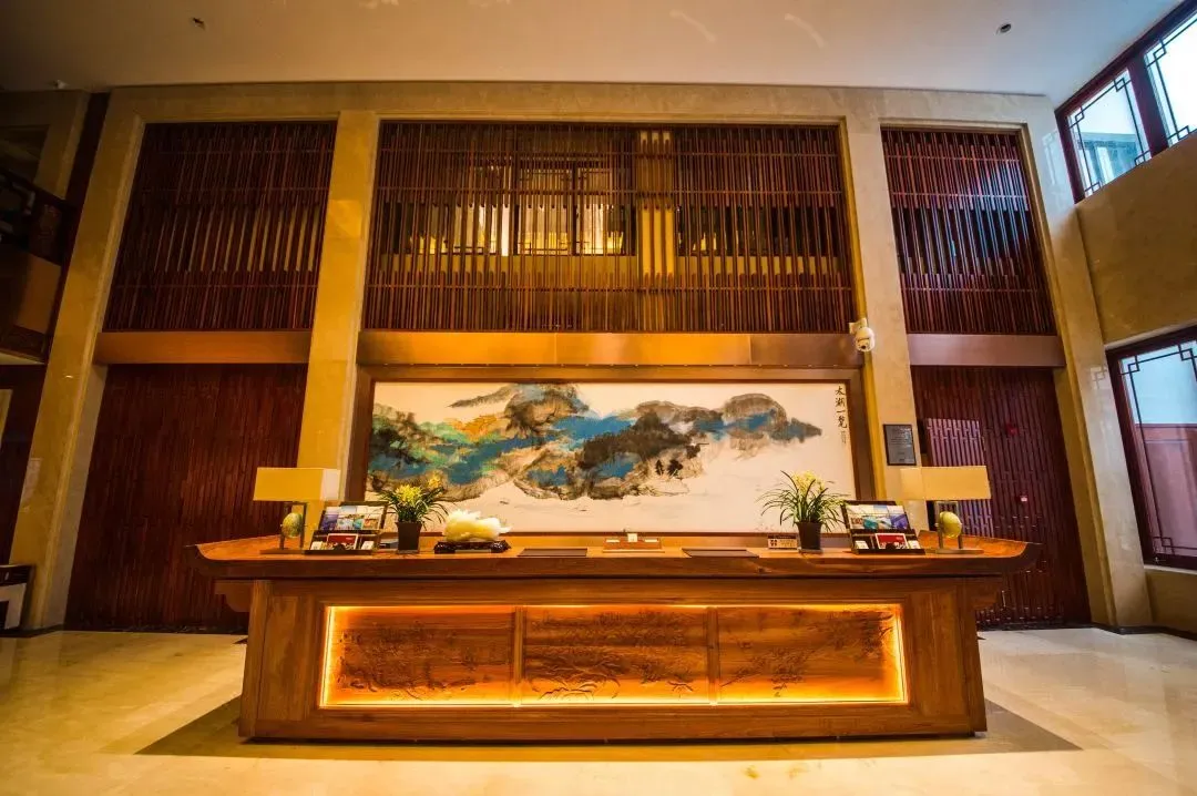 乘车进入叠翠楼后,礼宾会及时打开车门,进入2层大堂便能感受到国宾馆的气派,正中的太湖风光山水画也是一份小小的震撼。走廊很宽敞,新装修的内饰也很新颖。