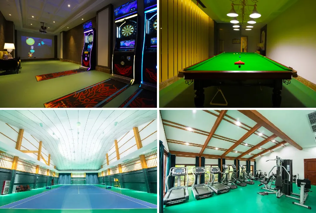 室内羽毛球场、星空影院等游乐设施,