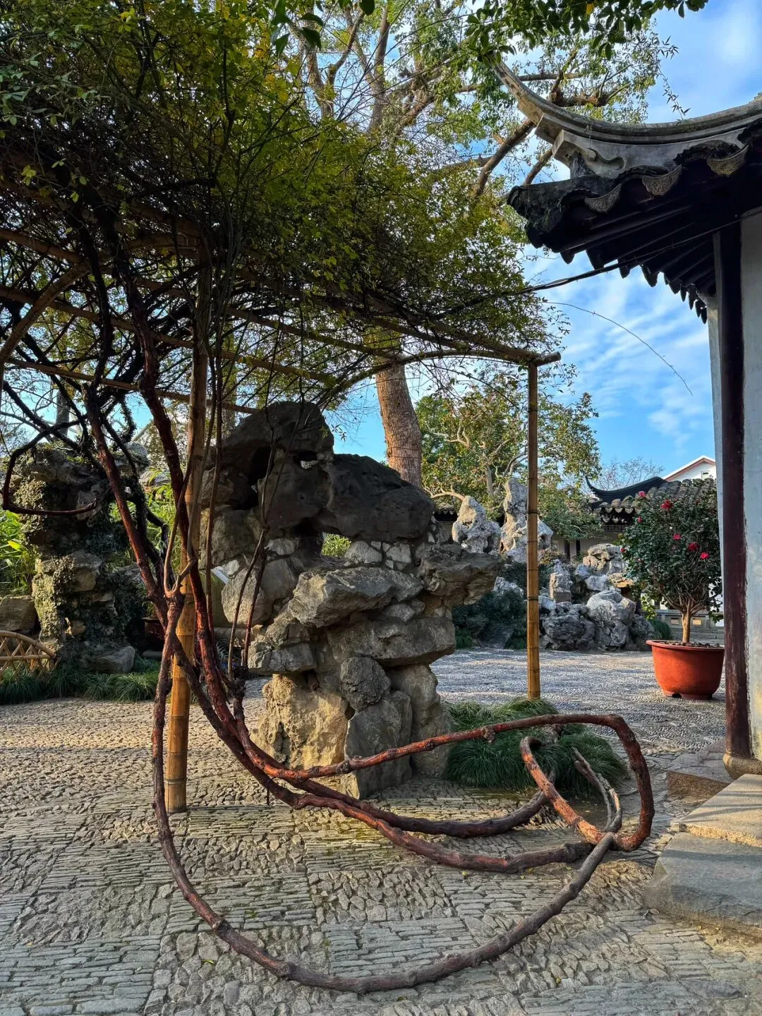 坐在临水的轩榭里,捧一杯热茶,看窗外的枯藤缠着老树,看石凳上落了几片枯叶,看穿汉服的姑娘举着相机追拍飞鸟——原来冬天的沧浪亭从不寂寞,它只是换了一种方式,用寂静包裹热闹,用素净容纳斑斓。