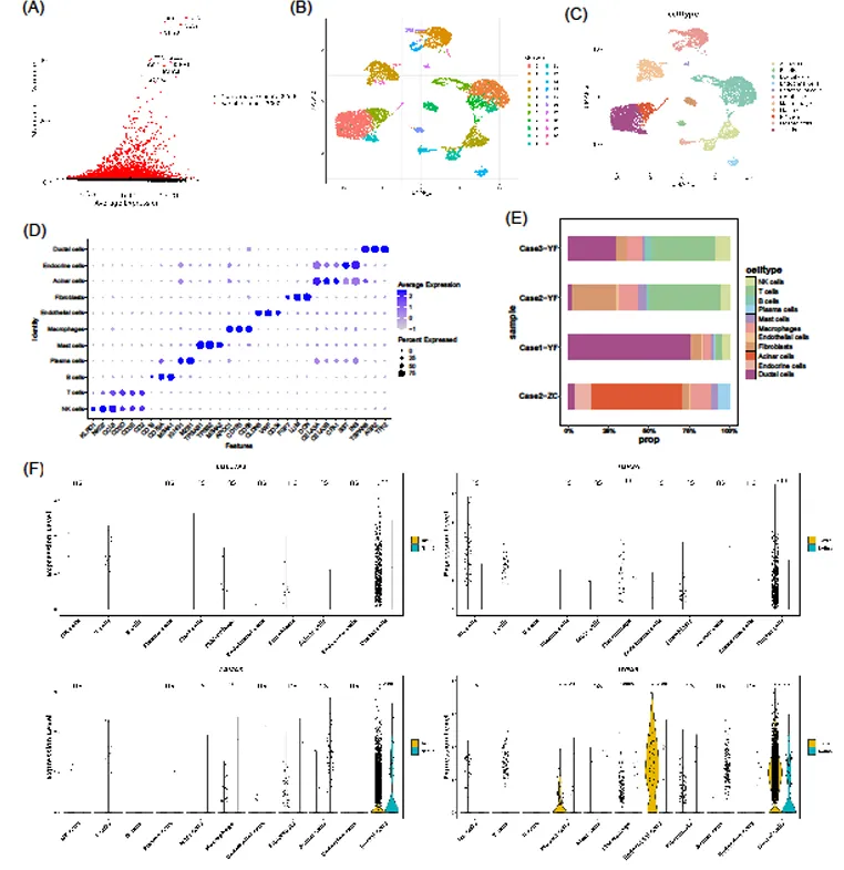 对单细胞数据进行质控、聚类和细胞注释,确定导管细胞为关键细胞类型。