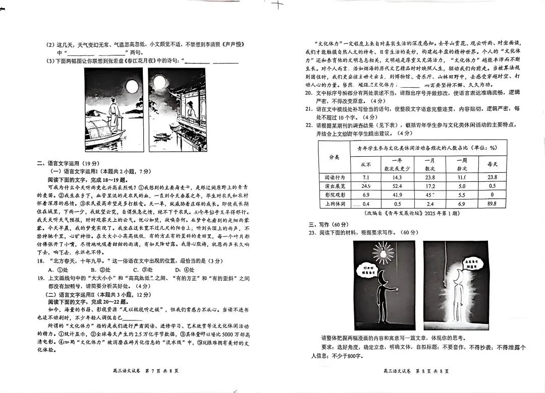 南京市、盐城市2025-2026学年第一学期期末考试|漫画作文“打开灯·点亮自己”审题立意