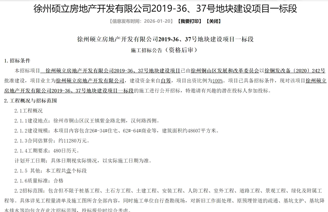 2023年11月,铜山区法院受理开发商 (徐州硕立房地产开发有限公司)破产清算一案。之后,铜山区引入区属国企接盘,通过司法程序剥离原开发商债务,采用代建模式重启。2025年11月该项目复工招标计划发布,工程包括34栋住宅、3栋商业。现在正式对一标段的9栋住宅、3栋商业等进行招标,后续其它楼栋施工将陆续招标、建设。1年4个月后,也就是明年夏天,这9栋楼业主,就能拿到房子了!虽然最近几年关于烂尾楼盘活的利好政策层出不穷,但进展仍不达预期。