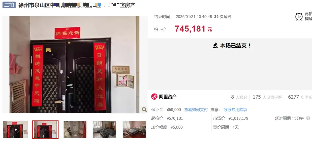 据现代快报消息:近日,位于徐州市泉山区的一套法拍房进行拍卖。这套“发生过非正常死亡事件”住宅,市场评估价为101万余元,起拍价仅57万余元。1月21日,8名竞买人经过激烈竞拍,这处“凶宅”最终以74.5181万元成功易主。