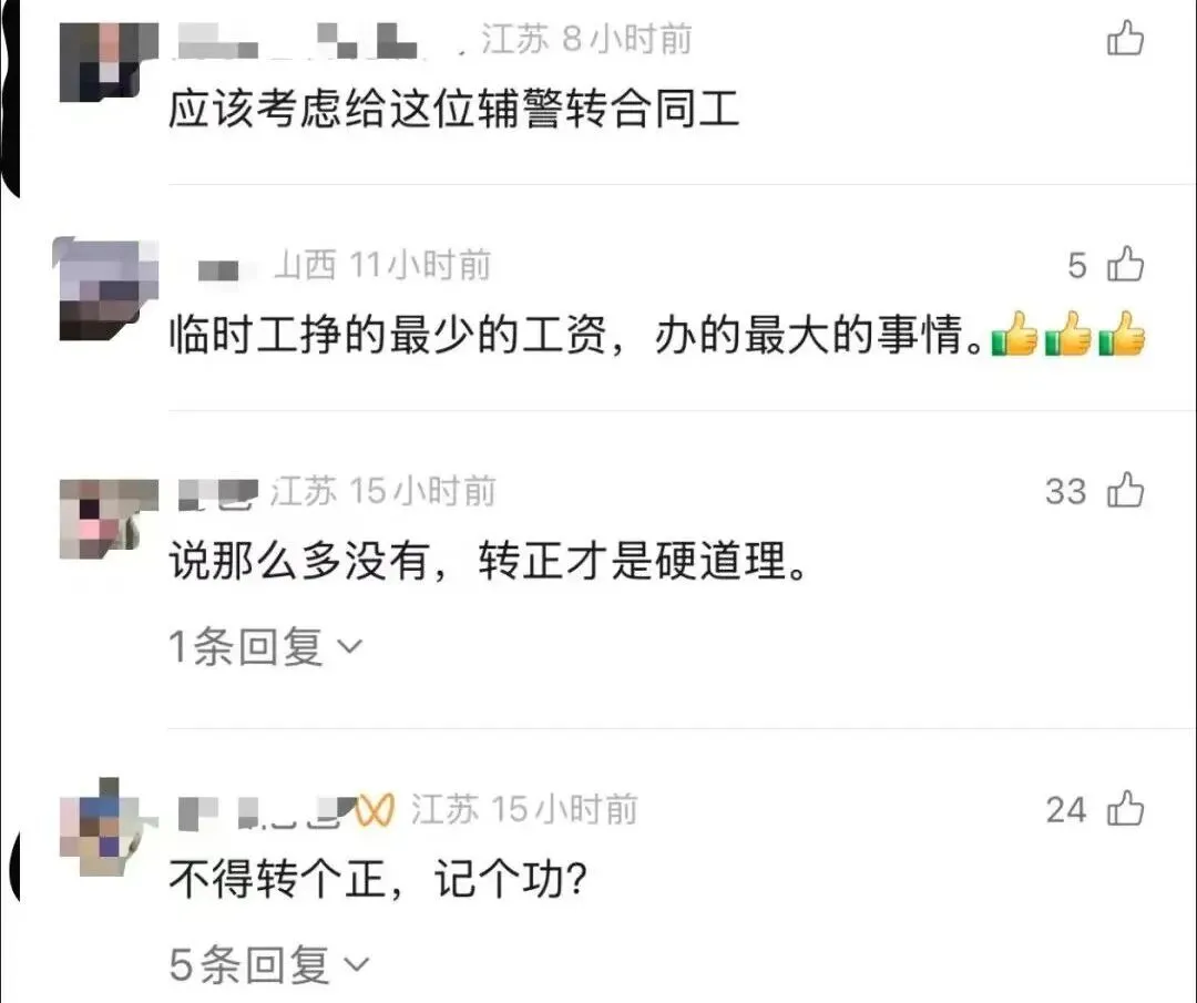 呼吁将该辅警转正