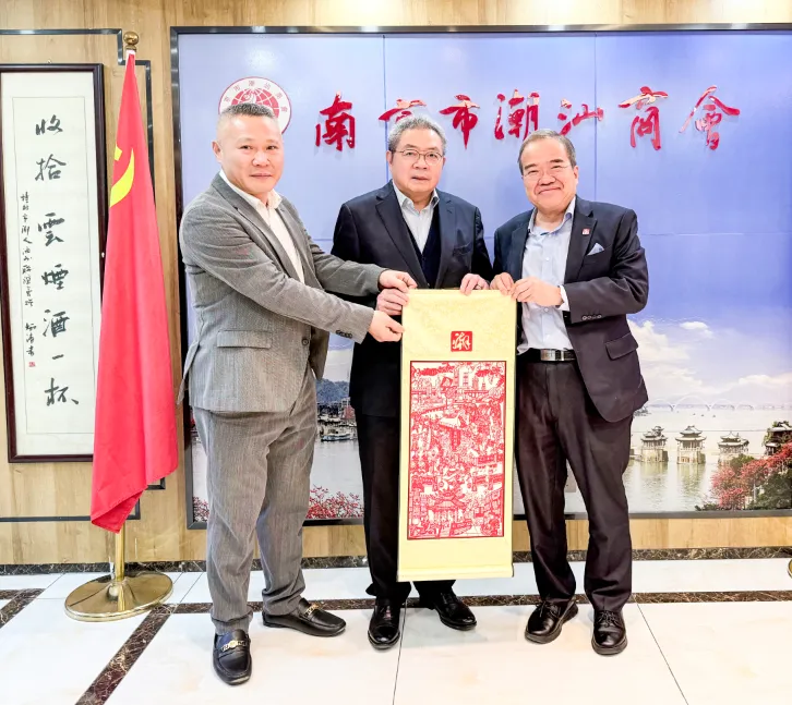 2026年1月15日下午,國際潮團總會執行主席、香港潮屬社團總會永遠名譽主席陳幼南博士率團到訪南京市潮汕商會,受到南京市潮汕商會會長陳錦漢及當地潮籍鄉賢的熱烈歡迎和熱情接待。