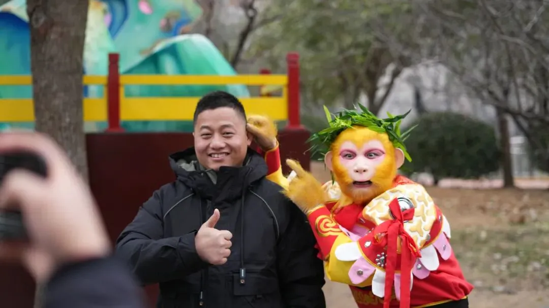 记者在现场了解到,此次主题演绎活动,以86版《西游记》为核心蓝本,采用自贡非遗花灯打造技术,再造当代的“西游盛世”。为呈现原汁原味的西游盛宴,十大经典主题舞台在景区中拔地而起,涵盖“水帘洞.智激美猴王”、“凌霄宝殿.大闹天宫”、“官封弼马温”、“白虎岭.三打白骨精”等核心剧情。舞台环线总长约1.1公里,深度还原电视剧中的场景,让游客在移步换景间,感受东方神话美学的震撼与浪漫。活动现场上演了一出“高老庄·四圣戏八戒”的剧情,孙悟空的机敏果敢,猪八戒的憨态可掬,唐僧的温润儒雅等角色特质被演绎得惟妙惟肖,引得现场游客掌声不断。据项目运营方合家乐(南京)文旅发展有限公司执行董事兼总经理董雪梅介绍,本次主题活动在内容设计上亮点纷呈,除了十大舞台的沉浸式演出,还创新推出多项互动体验,游客可通过与各场景NPC互动完成任务获得“银票”,积累的“银票”可兑换精美礼品。“银票大作战”等趣味玩法,将显著提升参与感和沉浸感。春节期间,景区还将举办马年集市,集中展示活珠子、猪头肉等六合本地特色美食,让游客在畅游西游世界的同时,感受浓郁的地方文化风情。据悉,揭牌仪式后,西游主题演艺活动将进入常态化运营。春节、元宵节期间将持续上演精彩演出,下一步,景区还将精细打磨《西游记》演出内容,调整营业时间,实现夜公园常态化开园。届时,游客不仅能观看经典西游演出,还能欣赏灯光秀、打铁花等夜间特色项目,享受震撼的夜间视觉盛宴。