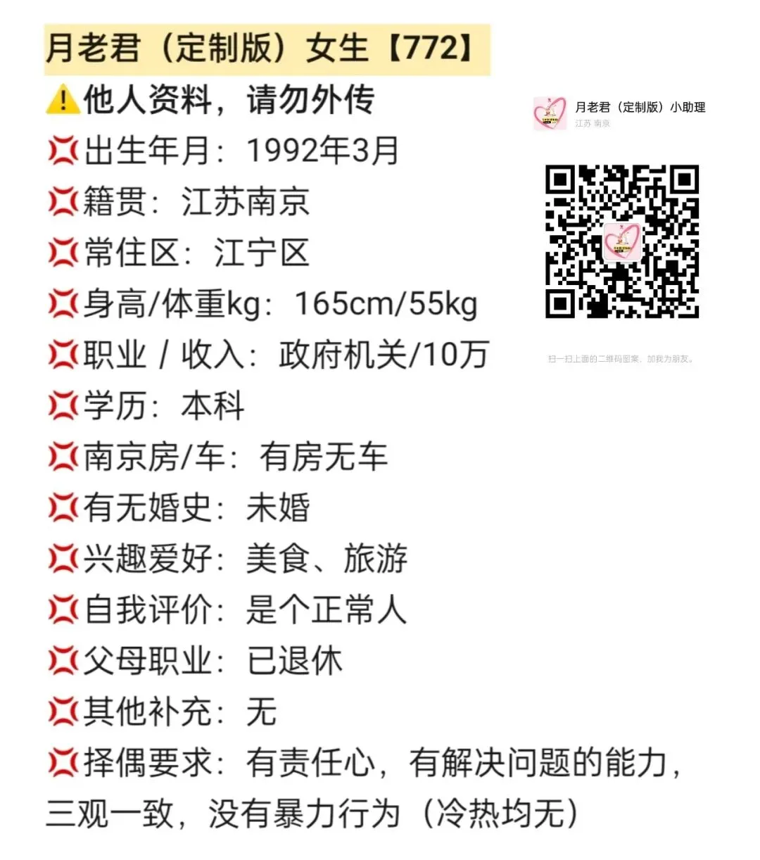 南京姑娘,身高165,政府机关工作,有房,是个正常人