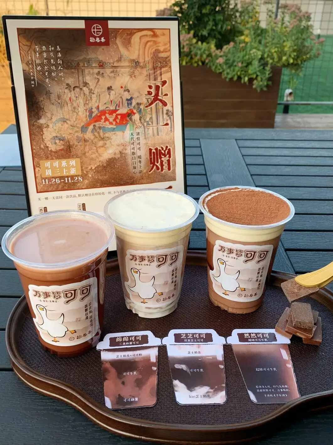 最近,拾叁茶还推出了“茶饮界新顶流”——可可系列,堪称冬天“最幸福”的饮料,以浓郁香气抵御一切寒风。设计上融入了清代孙温所绘的《红楼梦》,一瞬间,连温柔富贵乡的繁华景象都荡漾在舌尖。