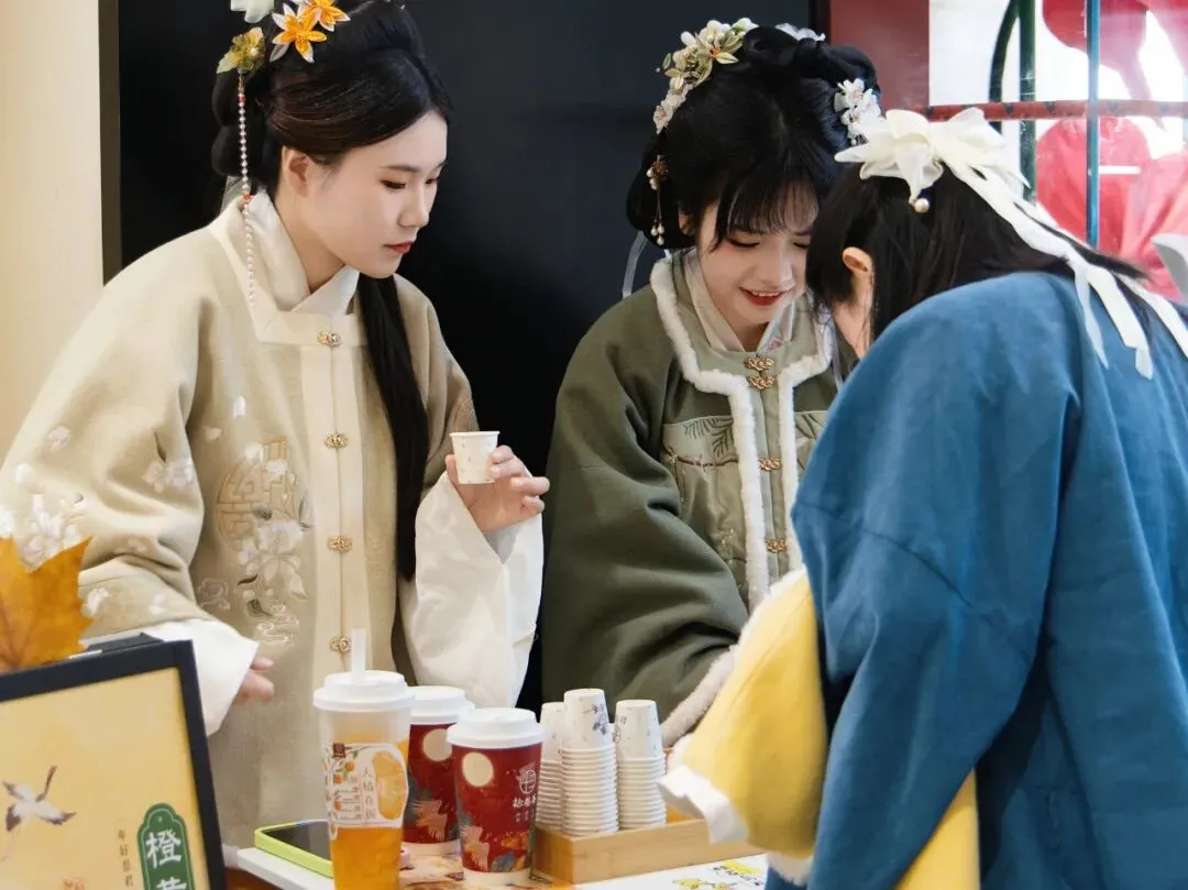 每逢农历上巳节、重阳节举办汉服节,已经成为拾叁茶的传统。不管是摇茶的店员还是汉服爱好者,大家不约而同穿上汉服来到拾叁茶,玩着品茶猜名、自制古法香囊、投壶飞花令,顺便把“红楼味道”喝进嘴里。