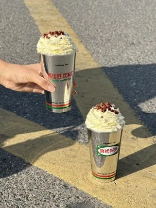盐水鸭奶茶,是游客们嘴硬心软的“必喝代表”。乌龙茶汤、有机牛奶和无碘海盐做成咸奶茶。咸香芝士奶盖上铺满的“南京板鸭”,是许多南京孩子的童年记忆。这一口,醇厚中透着酥脆。