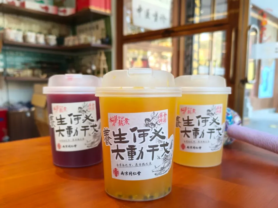 依托南京同仁堂的百年传承,乐掌柜的茶饮铺子主打“古今一方”“元气养生”“本草特调”等三大系列,让“药食同源”理念走向更多年轻化、生活化、时尚化的消费场景。