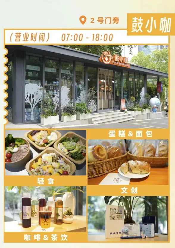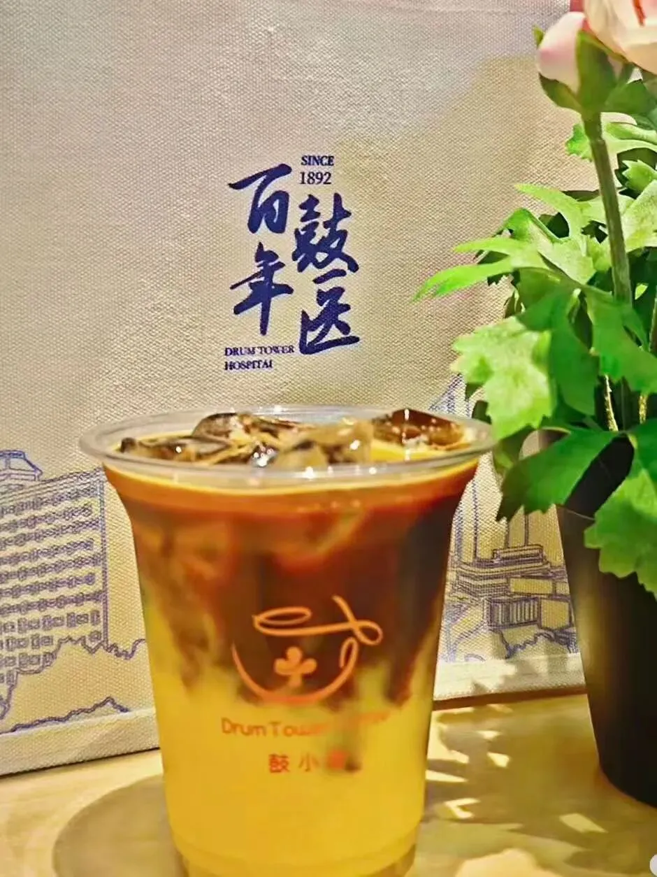 在鼓楼医院东门,有其自己的饮品店“鼓小咖”,轻食、养生茶饮、咖啡甚至是文创,都充满特色。