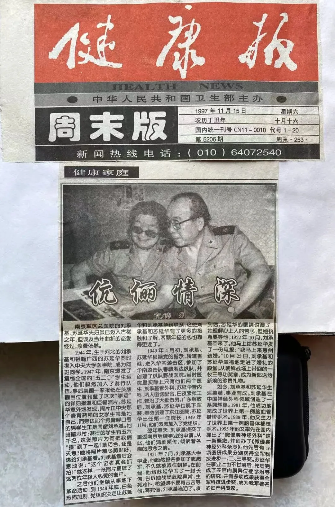 今天下午,一条百岁医学专家刘承基的短视频刷屏,快速走红。视频里,今年103岁的刘承基主任精神饱满、思路清晰,谈吐利落。“我都一百多岁了?哦,我都忘记了!”刘承基主任不念年岁,不扰他人,成为长寿密钥。任职原南京军区南京总院期间,我多次采写刘承基与苏延华主任的科技相关报道,另有一篇二人传奇爱情稿,登上《解放军报》周末版头条,特此分享。一对老专家的两个“红娘”