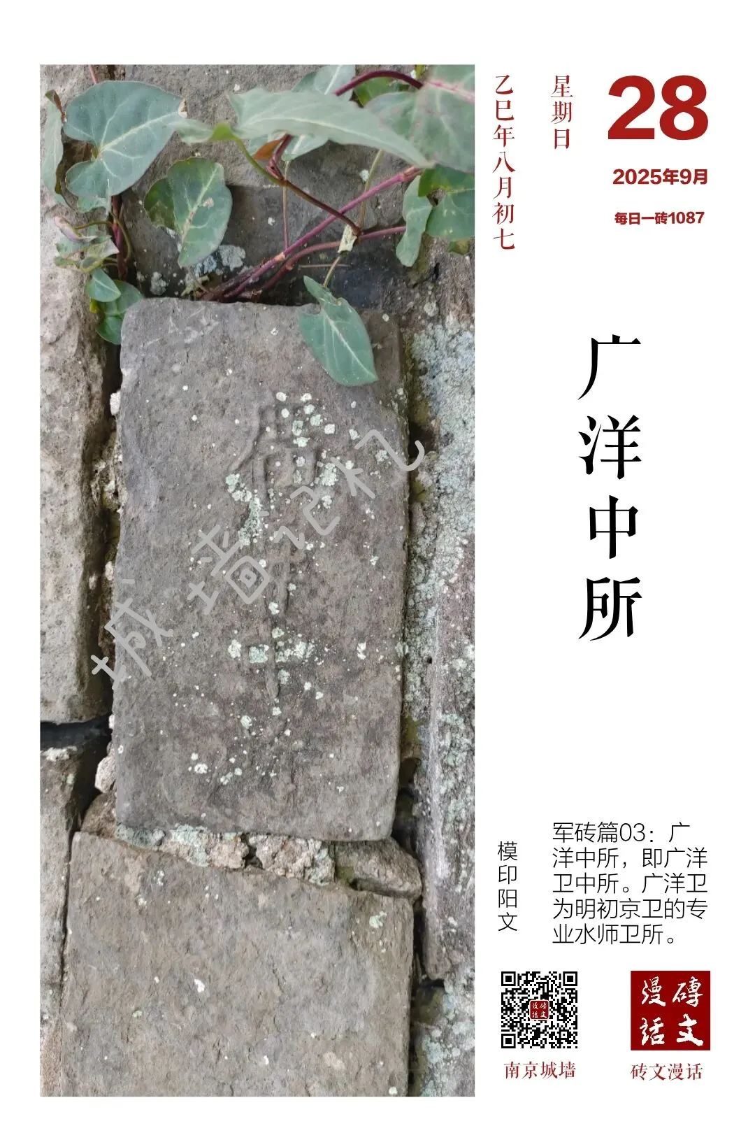 注1:《南京城墙志》和《南京城墙砖文》收录有广洋卫左、右、中、前4所,《铭文天下》收录有广洋卫前、后2所。