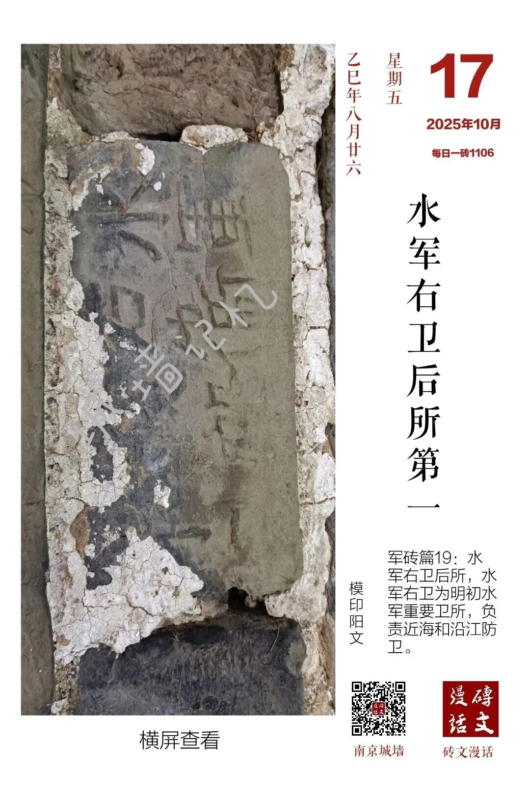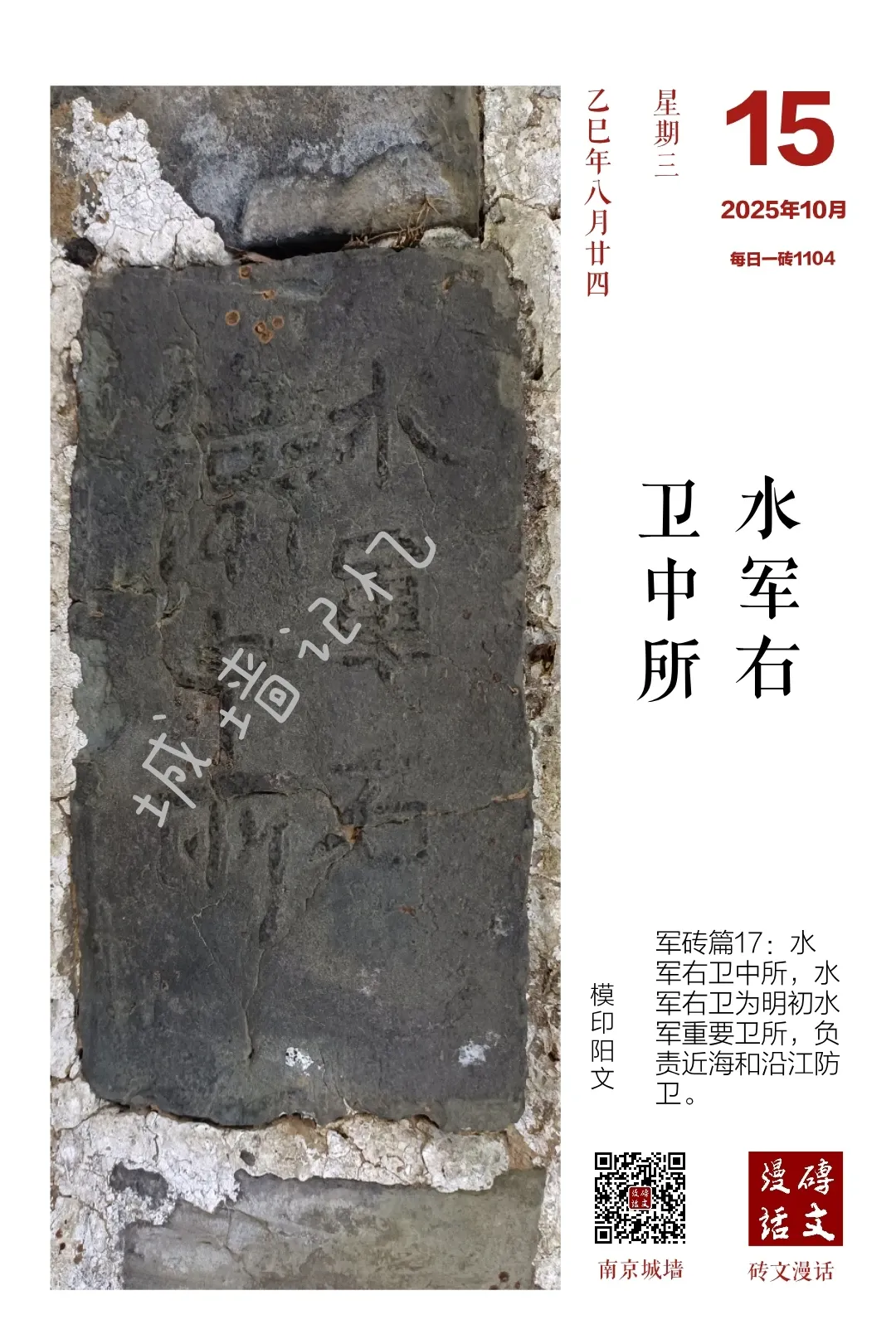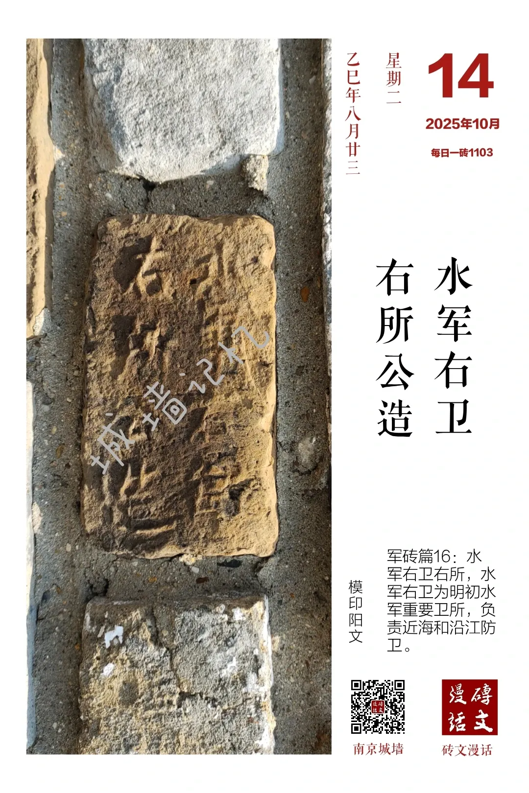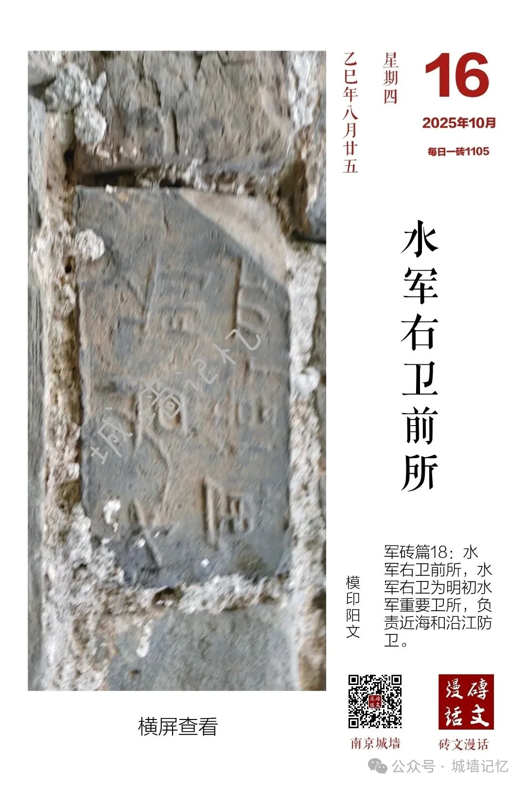 注1:《南京城墙志》、《南京城墙砖文》、《铭文天下》均收录有水军右卫左、右、中、前、后5所。