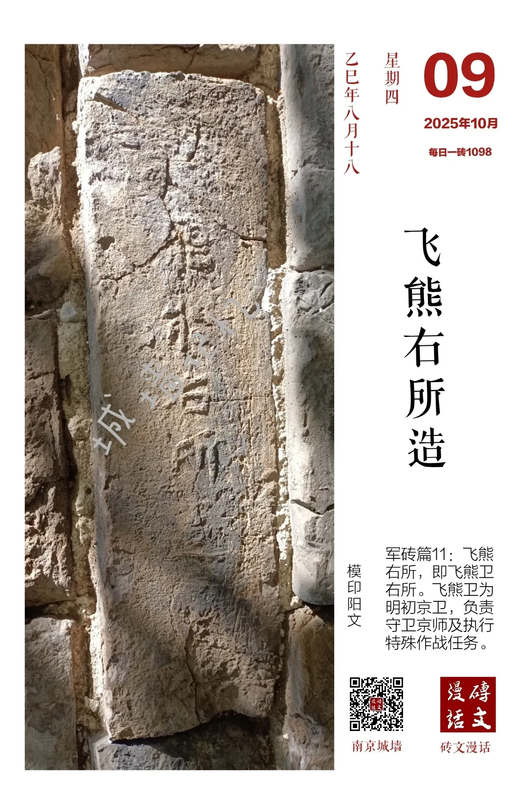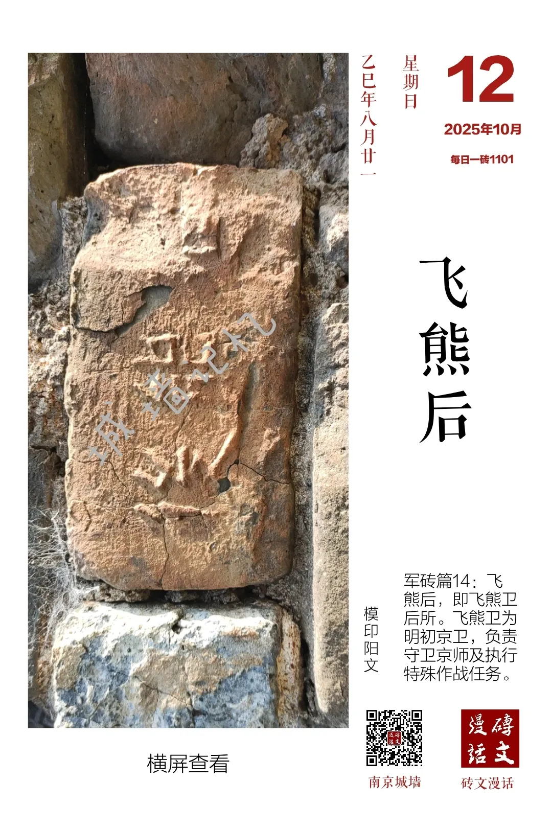 注2:飞熊卫各所城砖铭文多简称并带有姓氏或数字,如飞前时、飞中、飞中十、飞前后等。