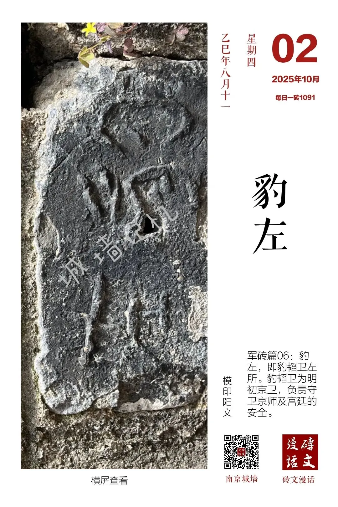 注2:目前未在相关资料和城墙本体上发现“豹韬卫后所”砖,《南京城墙砖文档案》暂未收录,有待后续发现。