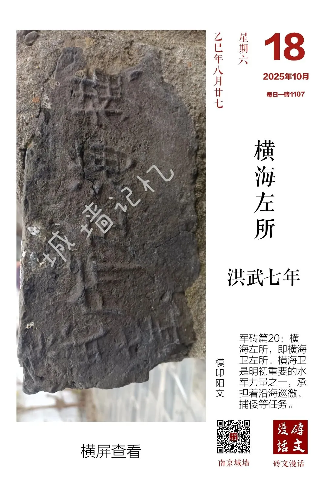 注2:目前未在相关资料和城墙本体上发现“横海前所”或“横海卫前所”砖,《南京城墙砖文档案》暂未收录,有待后续发现。