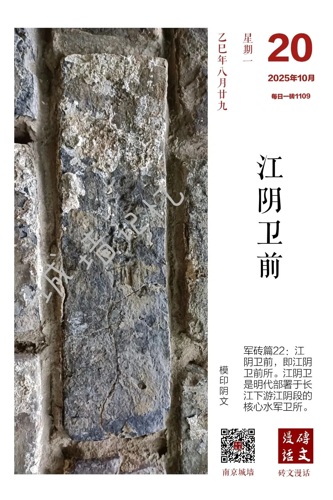 注1:《南京城墙志》收录有“江阴卫右、江阴后卫”,《铭文天下》收录有“江阴卫右所”。《南京城墙砖文》收录有“江阴卫右、江阴卫后所”。