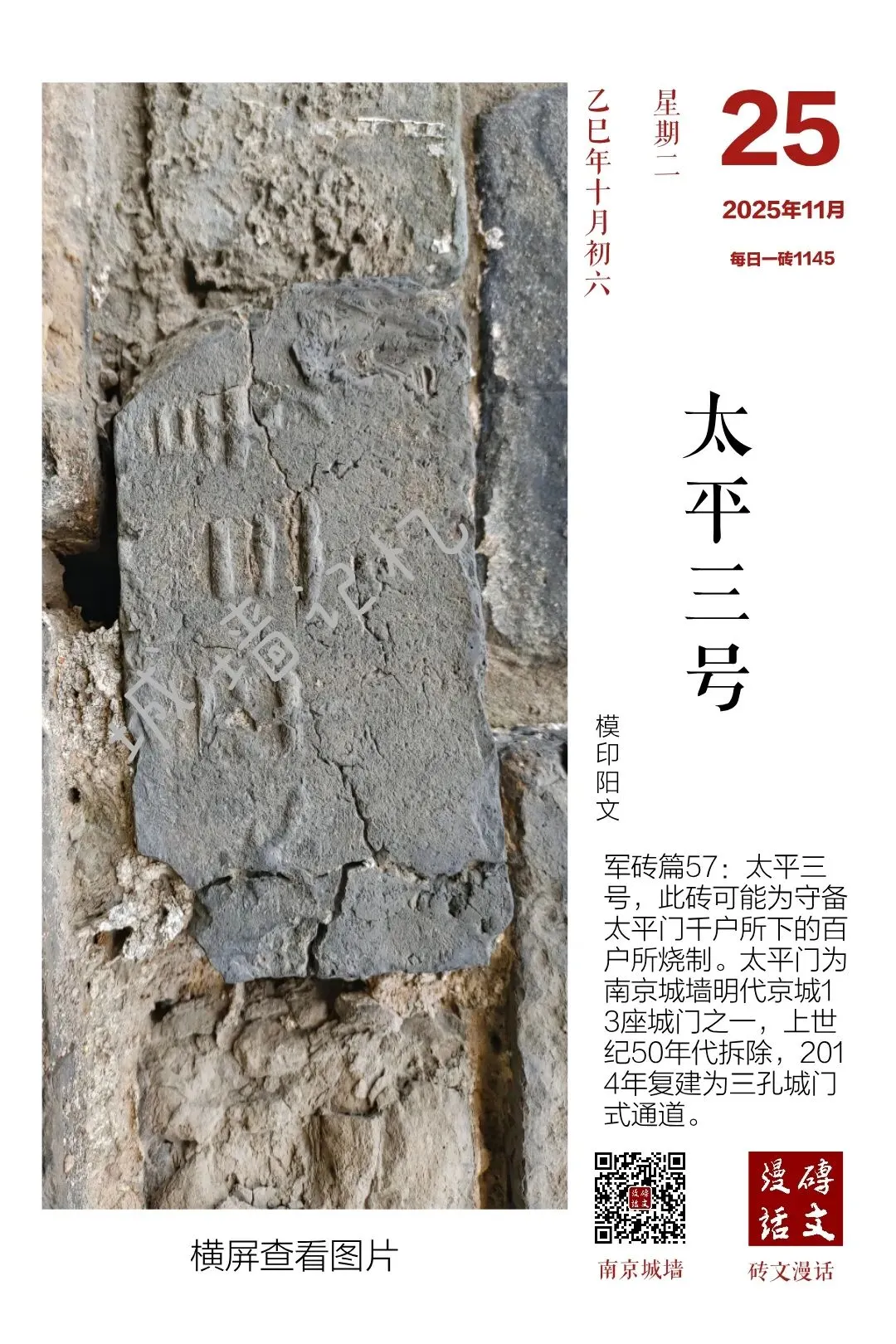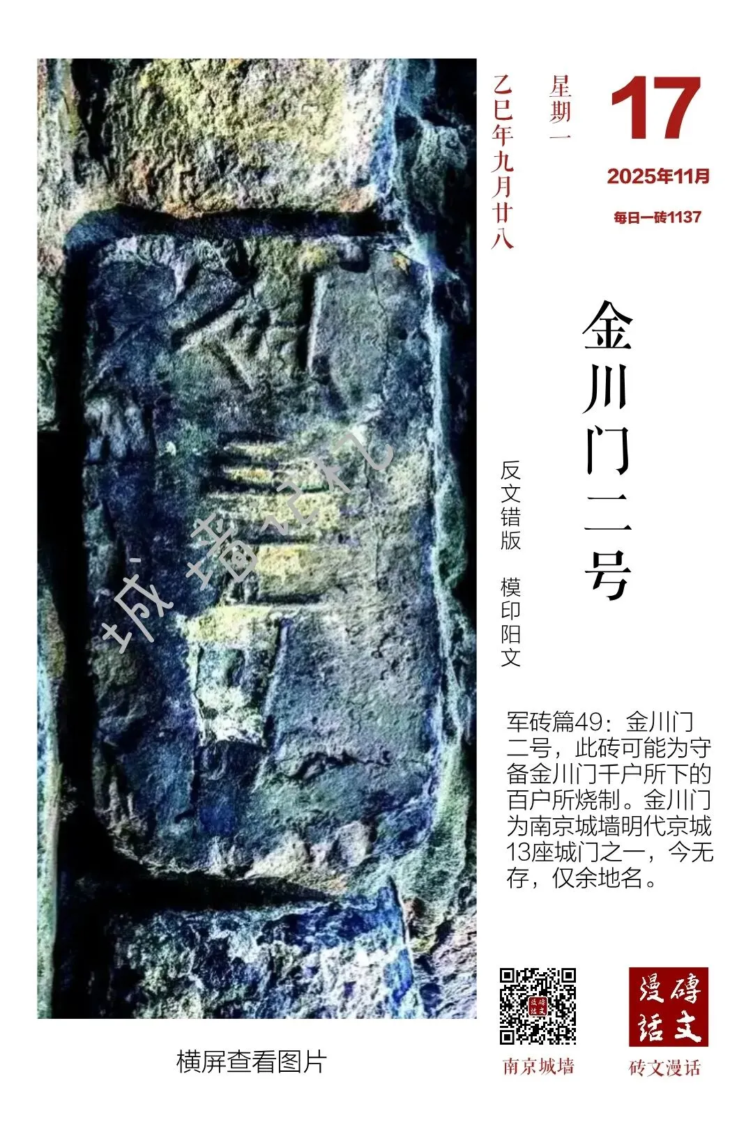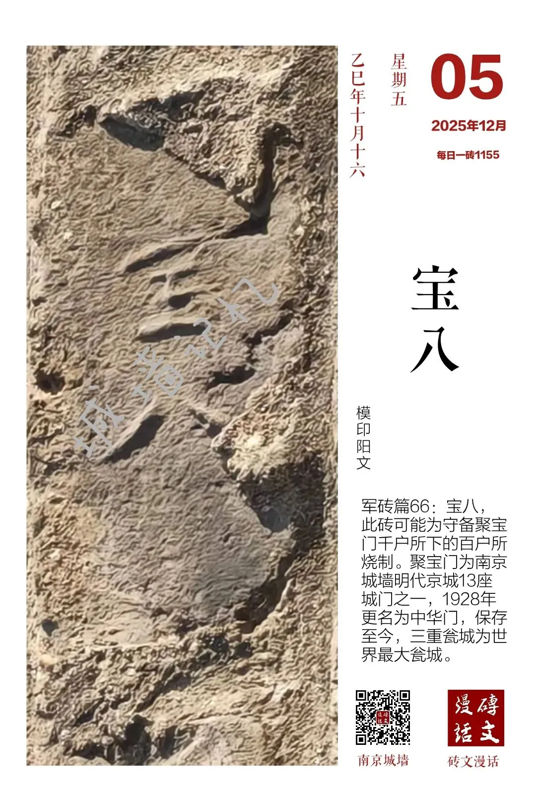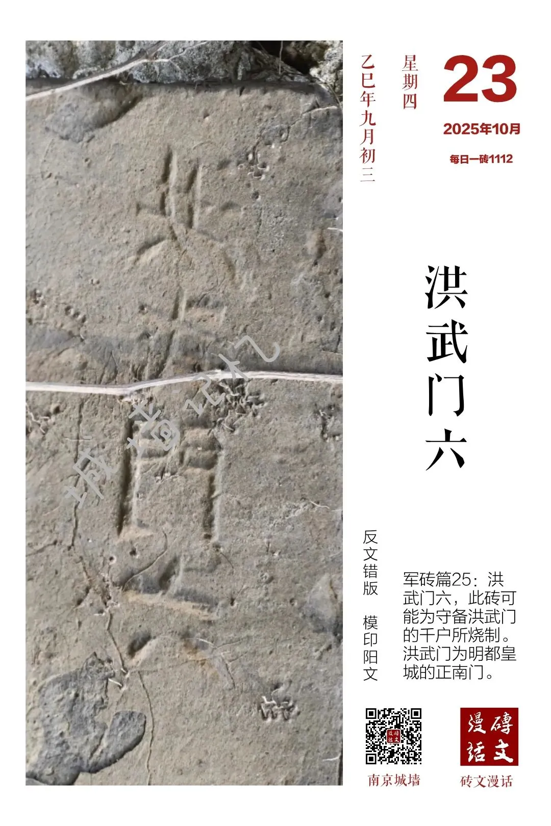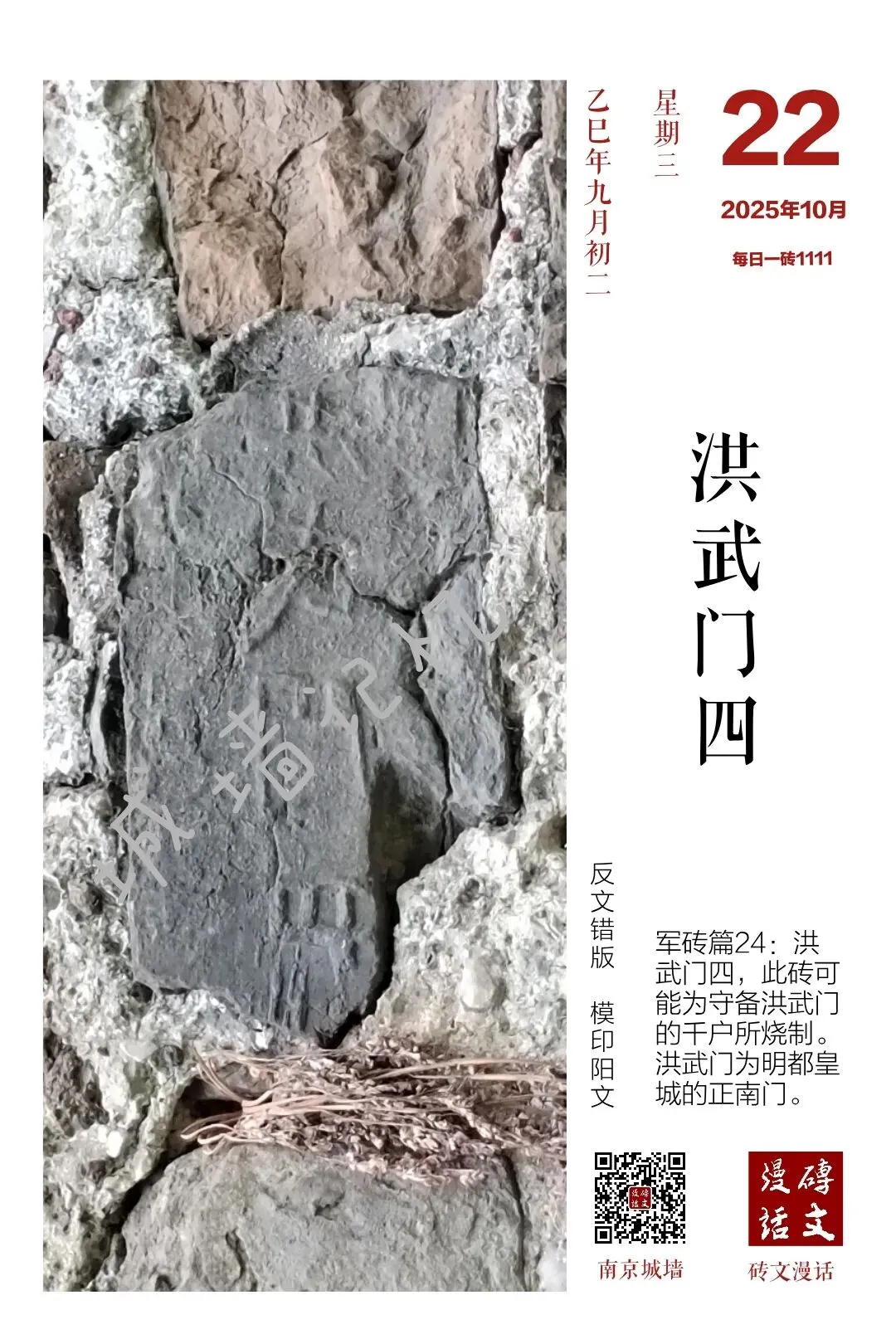 注3:洪武门砖采集于小桃园段城墙外侧,“洪武门八”新近收录入《砖文档案》,未在砖文日历中分享。
