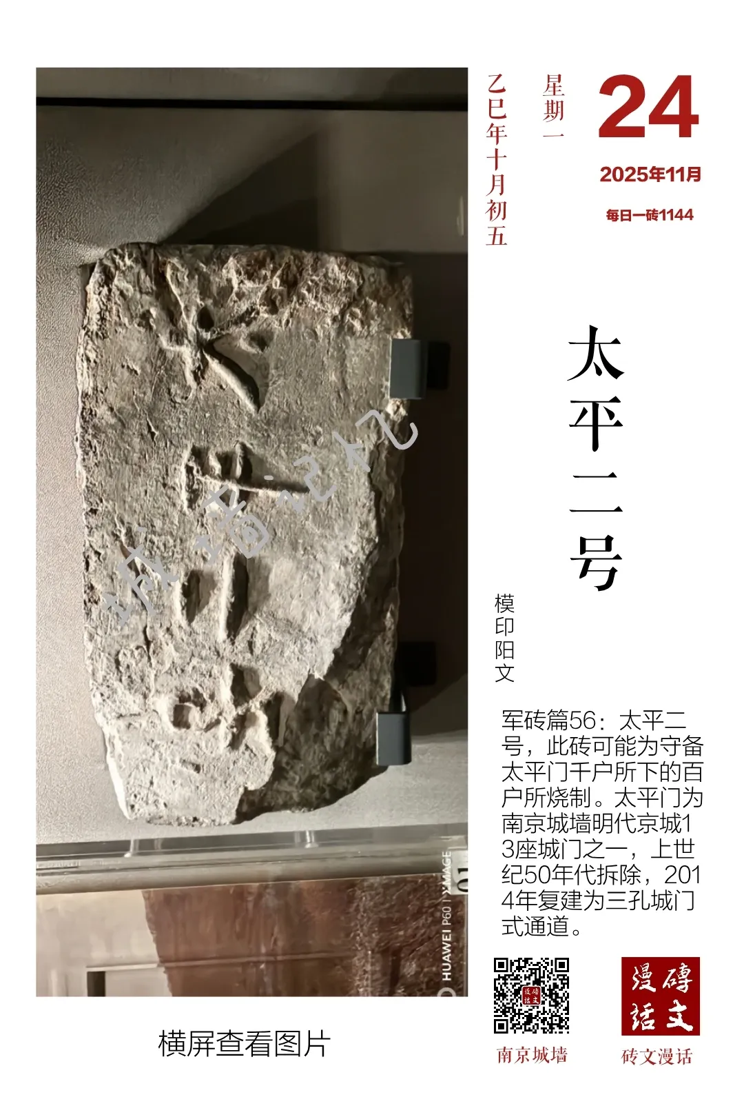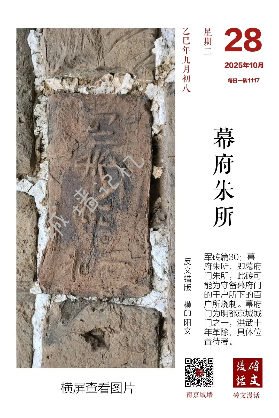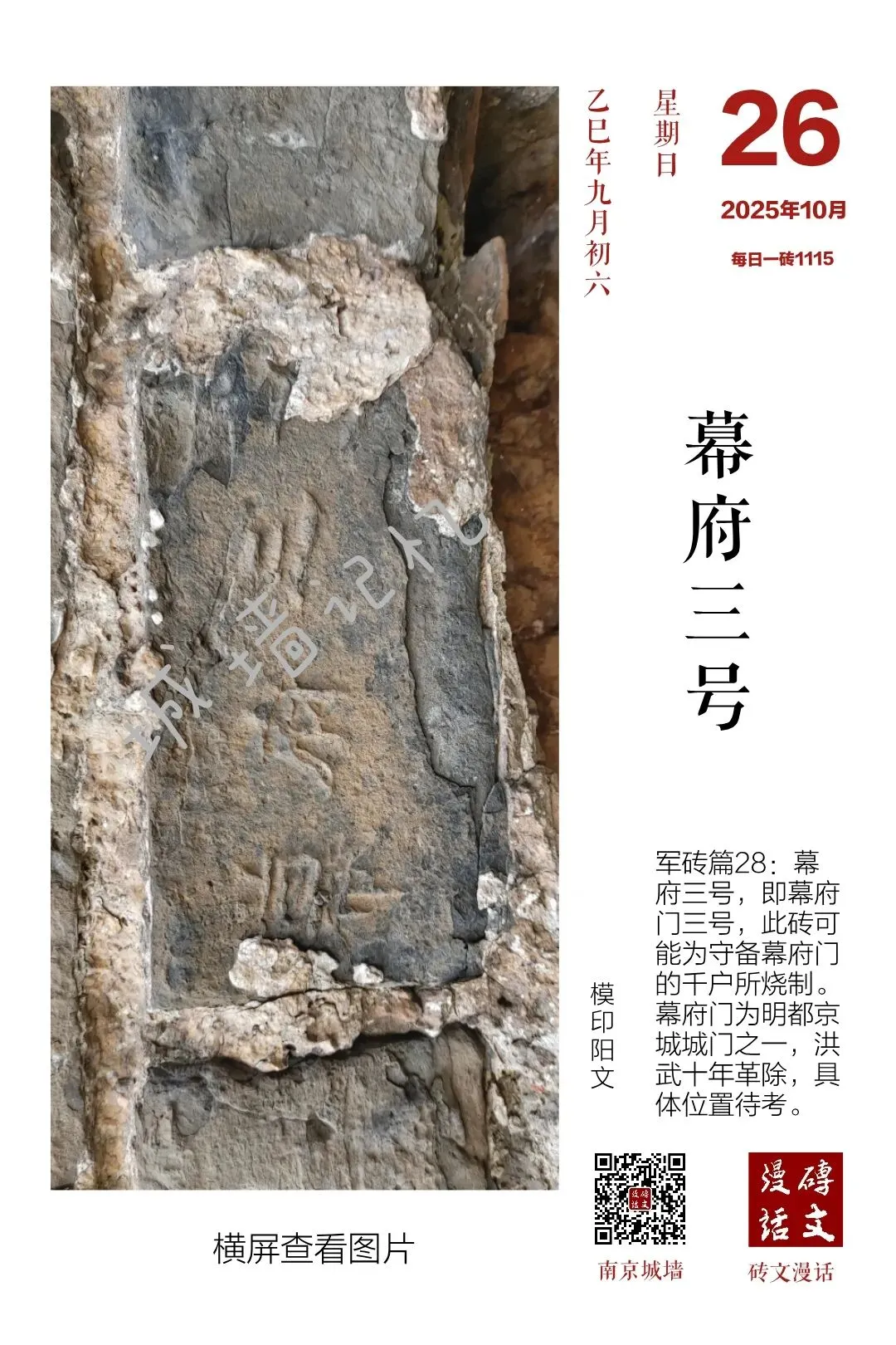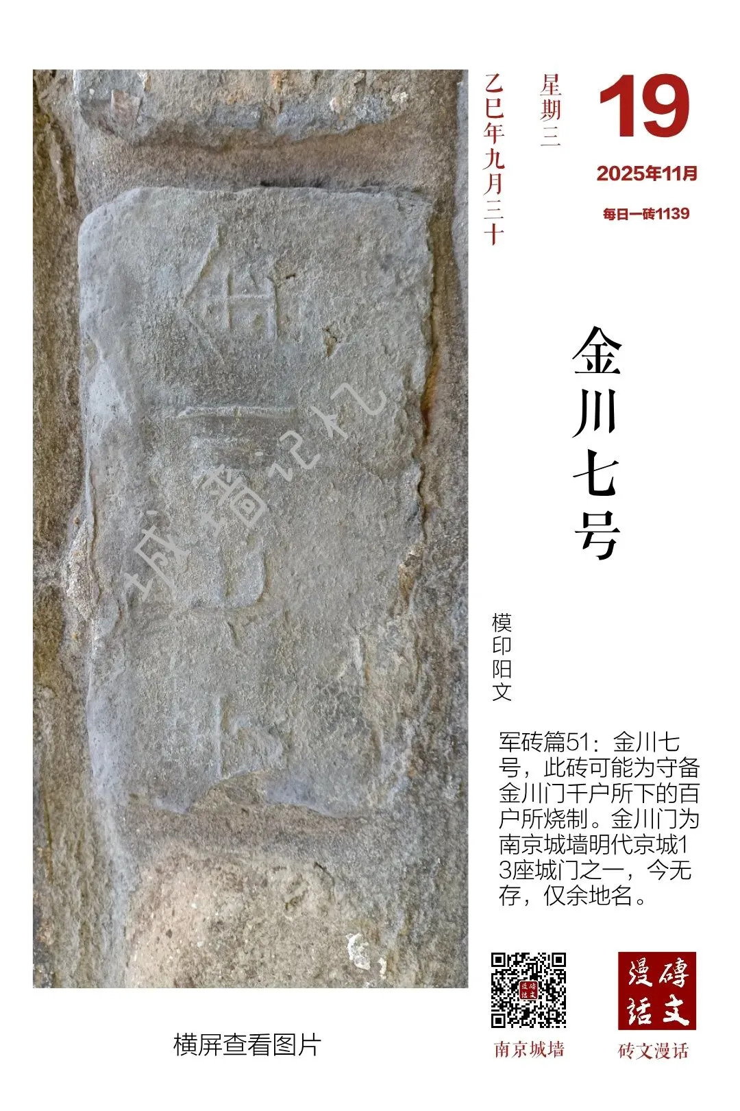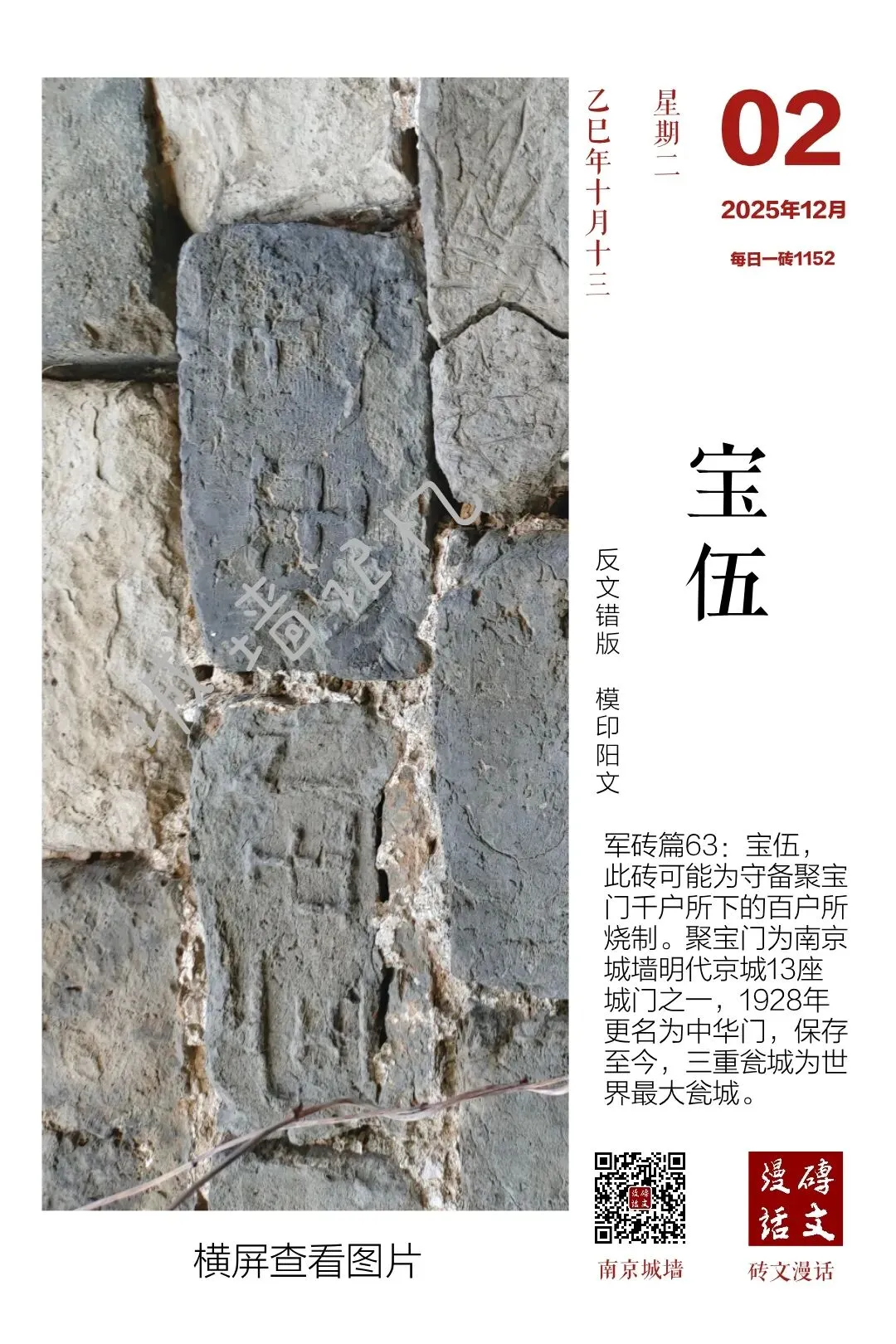 注3:洪武门砖采集于小桃园段城墙外侧,“洪武门八”新近收录入《砖文档案》,未在砖文日历中分享。