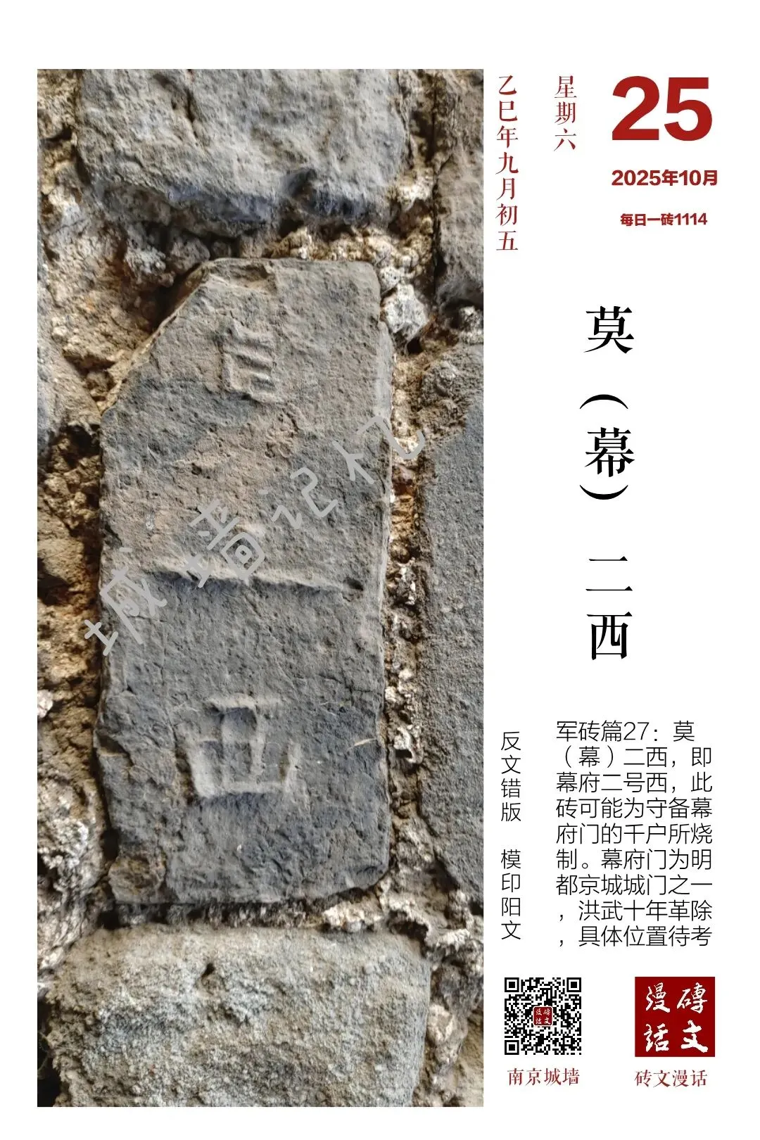 注1:部分城砖铭文为“莫一号”“莫二西”,“莫”通“幕”。