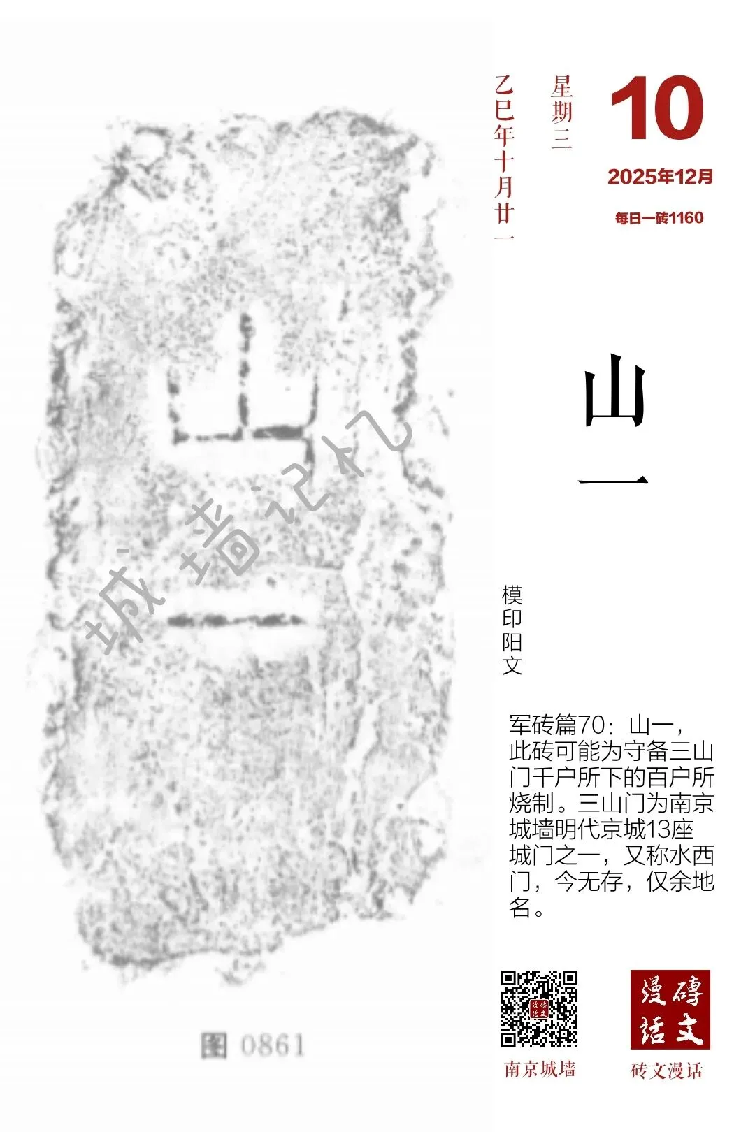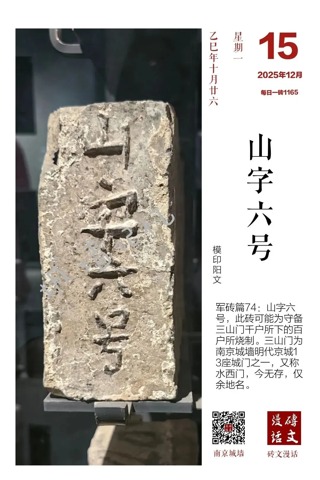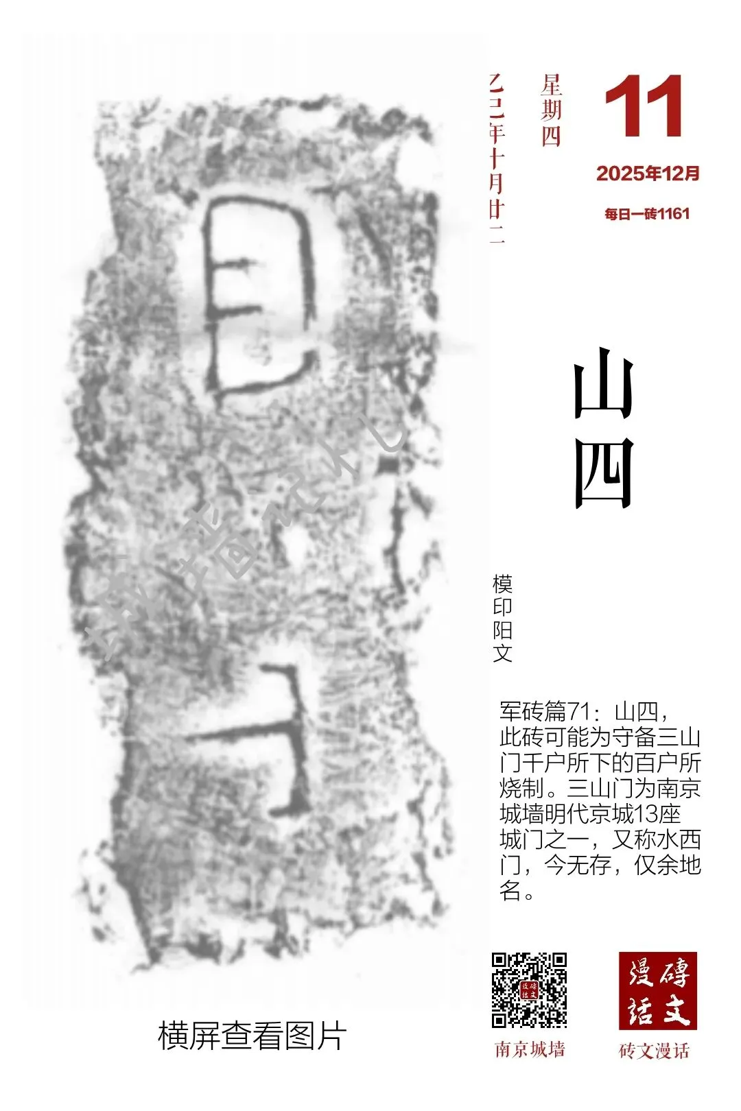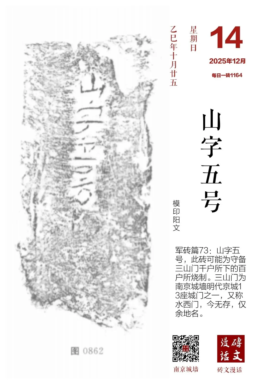 注3:目前发现的“山”字砖多为南京城墙保护管理中心藏砖。