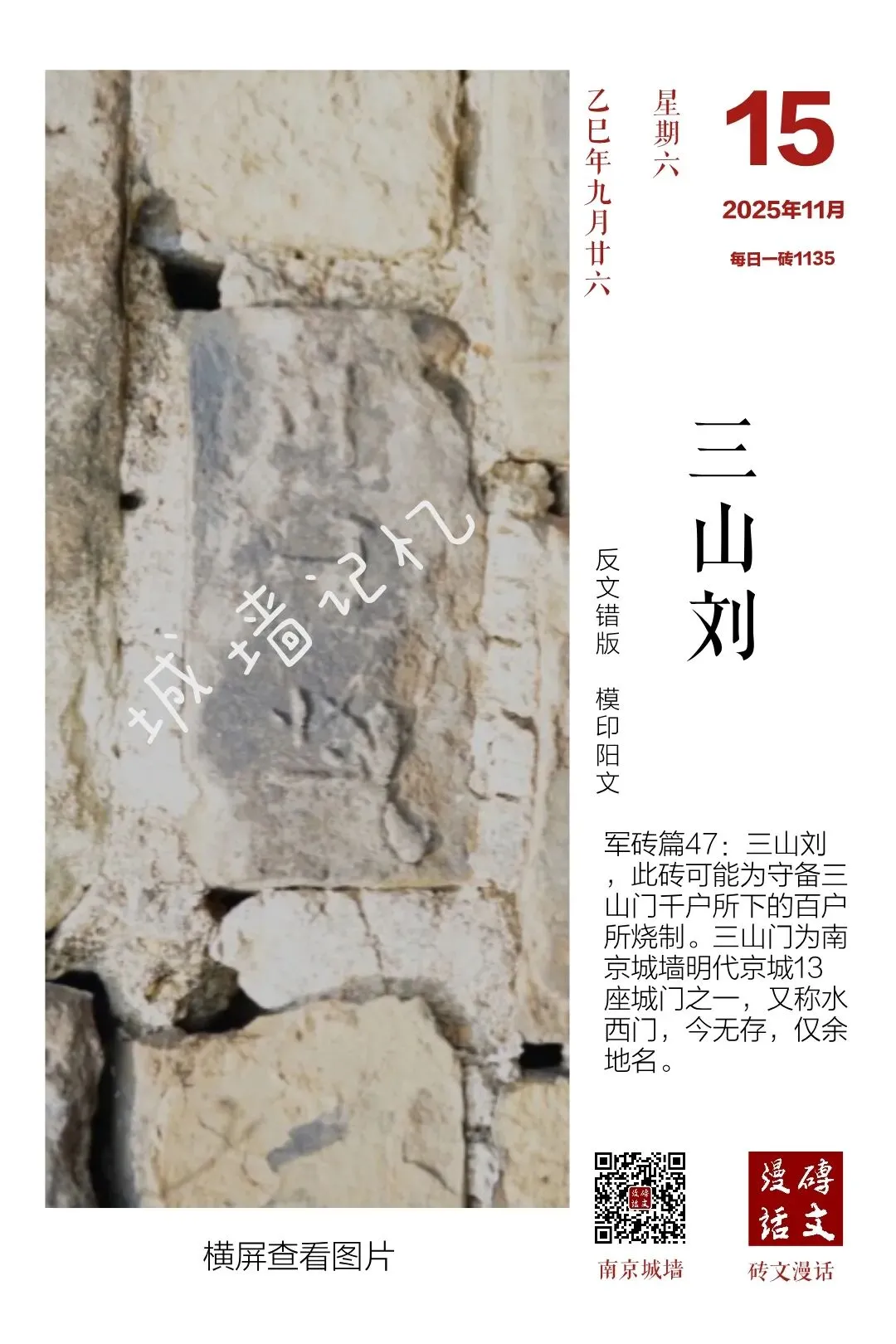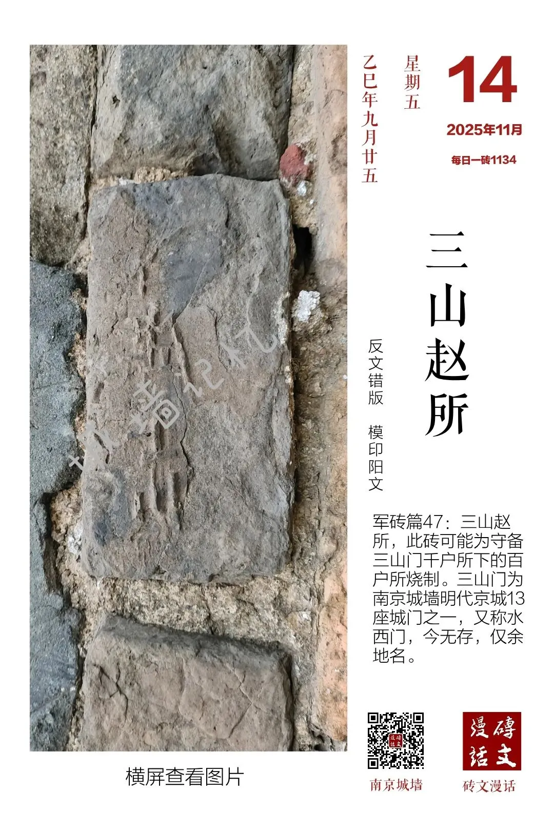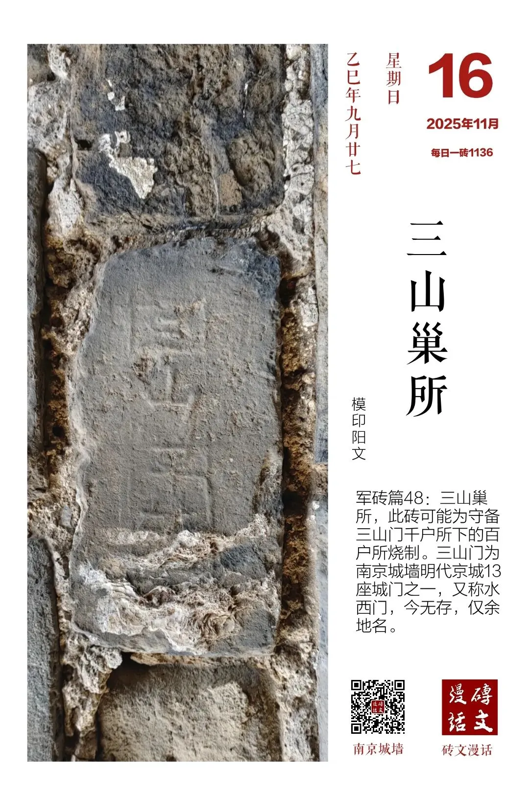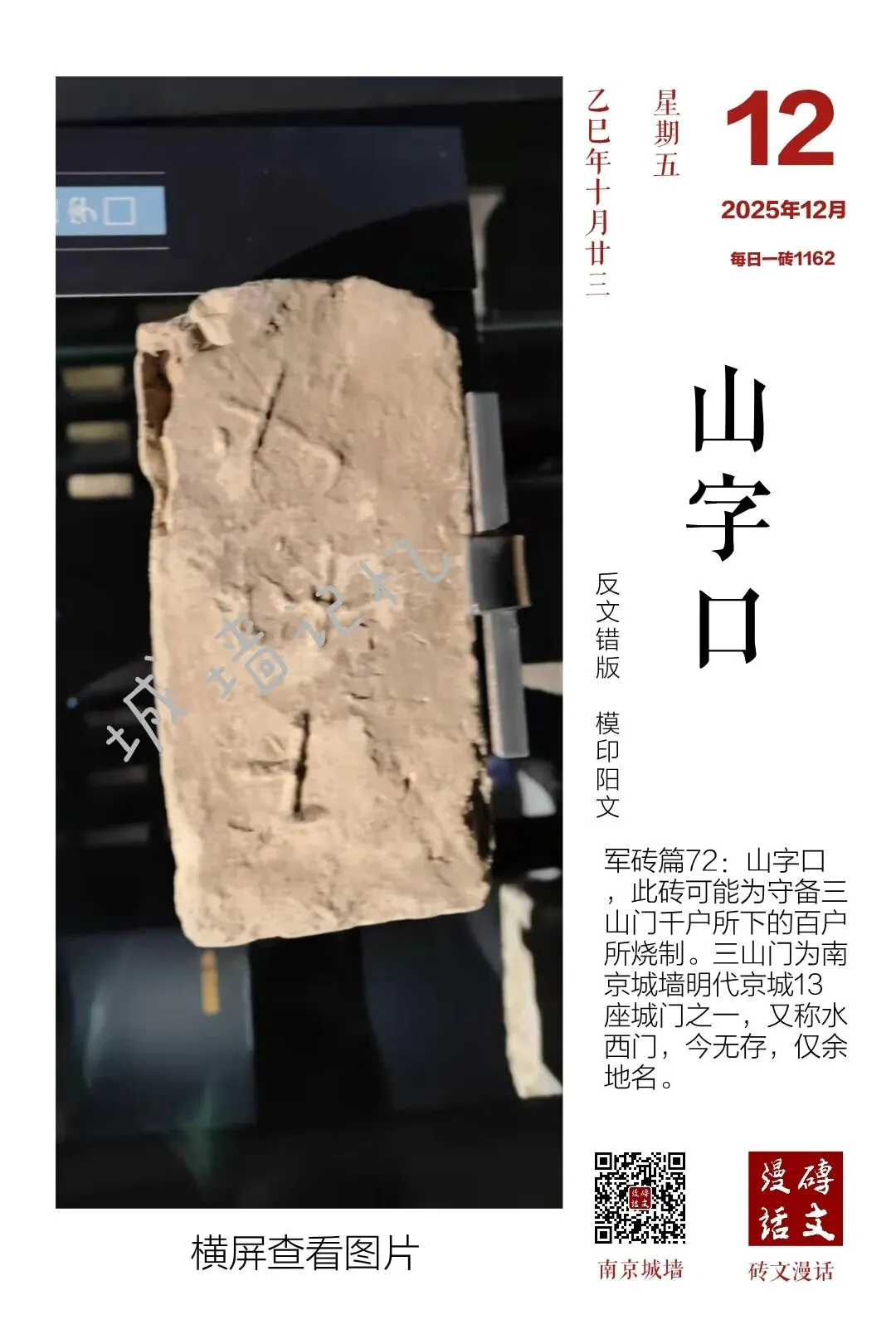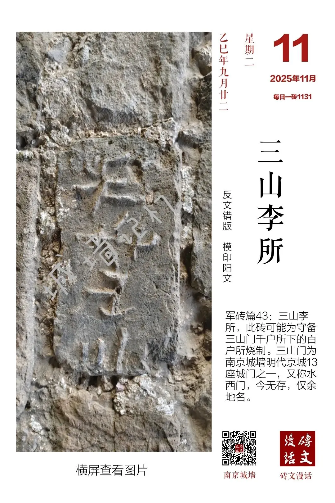 注3:目前发现的“山”字砖多为南京城墙保护管理中心藏砖。