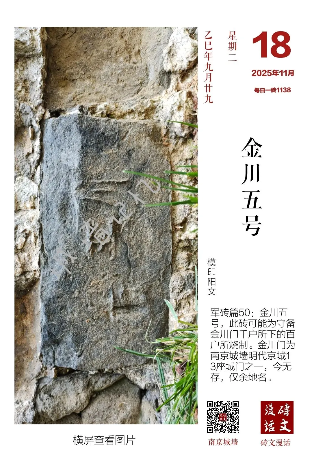 注1:《南京城墙志》收录有“金川门”砖,无编号。