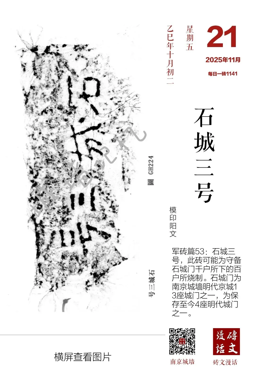 注1:《南京城墙志》收录有“石城”(无编号)“石城七号”砖(未采集到实物图片)。