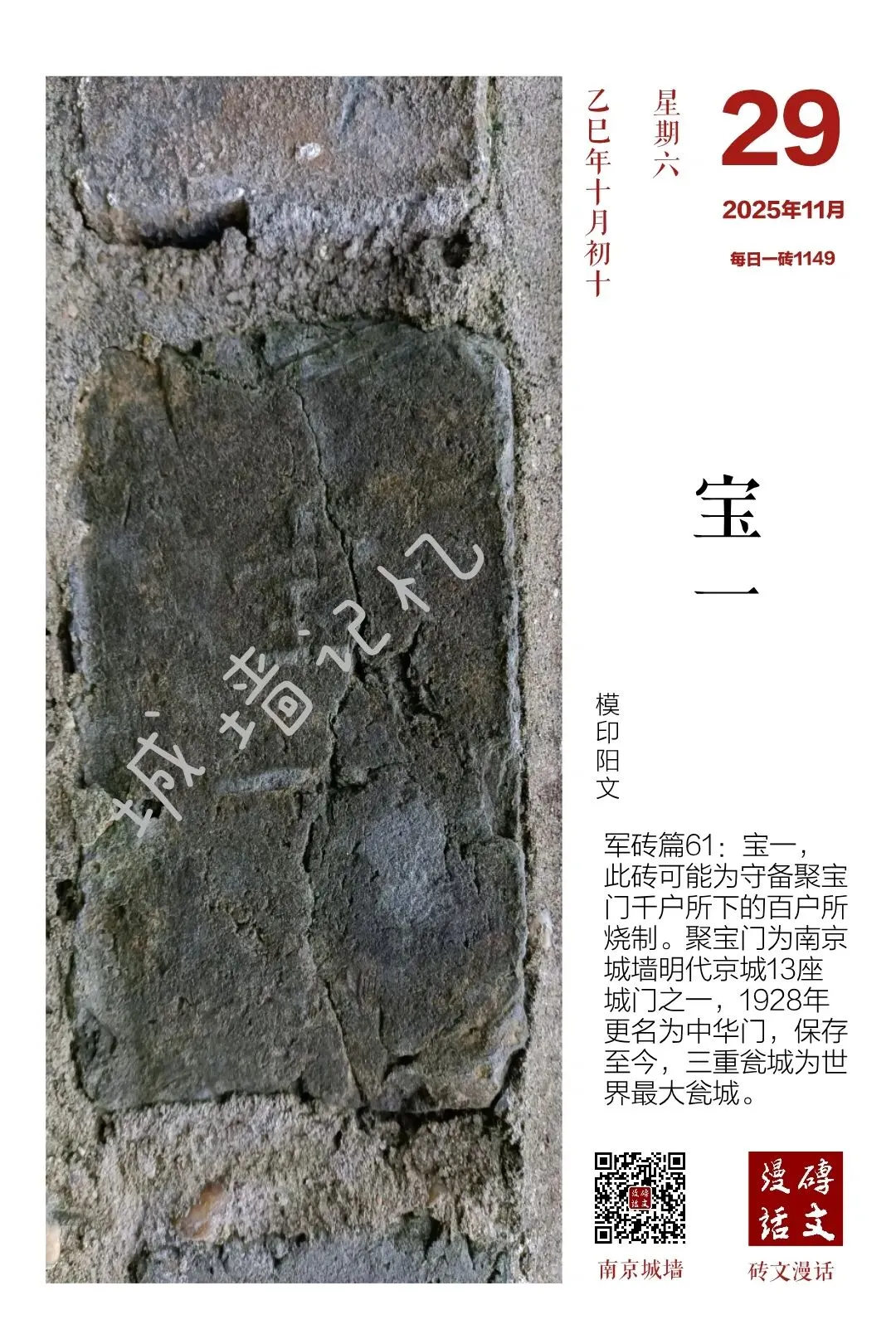 注2:目前暂未在南京城墙上采集到“聚宝”铭文砖。