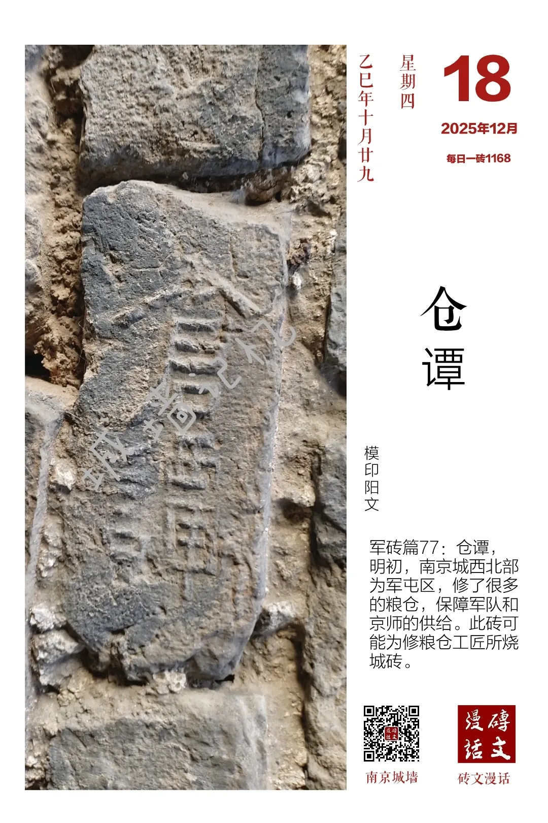 注2:《城铭流韵——南京城墙库藏精品砖文图录》收录有“仓凌”铭文砖,列为军队其他部门烧制,认为该砖应为军队粮仓负责烧造,其中“凌”字为修仓人的姓氏。