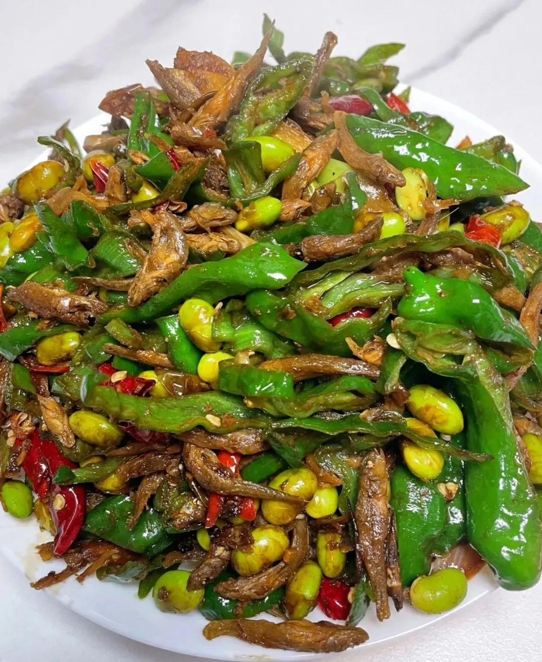 食材:朝天椒/干辣椒,毛豆,小鱼干,葱姜蒜,花椒