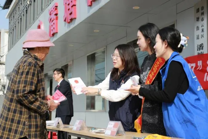 坚持以群众需求为导向,推动文明实践与法律服务深度融合,解锁基层治理的法治密码。创新推出“节日法相伴”系列活动,结合清明节、重阳节等传统节日,联合多部门开展“绿色清明·文明祭扫”“情暖重阳·法润桑榆”等主题宣传,重点普及民法典、消防法、治安管理处罚法、老年人权益保障法等法律法规,倡导采用鲜花祭扫、网络追思等现代、环保的祭祀方式,弘扬孝亲敬老传统美德,以法治力量引领文明新风尚。依托辖区彭城驿站、暖蜂驿站设立“护新”法律服务站,联动构建“线上+线下”法律服务网络,将公共法律服务送到新业态劳动者和平台企业“家门口”,助推新业态行业健康发展。深入实施“暖夕筑梦”“巧手云娘”“甘霖助学”等特色志愿服务项目,在常态化提供助老助残、健康义诊、扶贫帮困、关爱未成年人等志愿服务中,融入以案释法、矛盾调解、法律咨询、法治文艺演出等法治实践活动,实现法治供给与民生需求的“双向奔赴”。