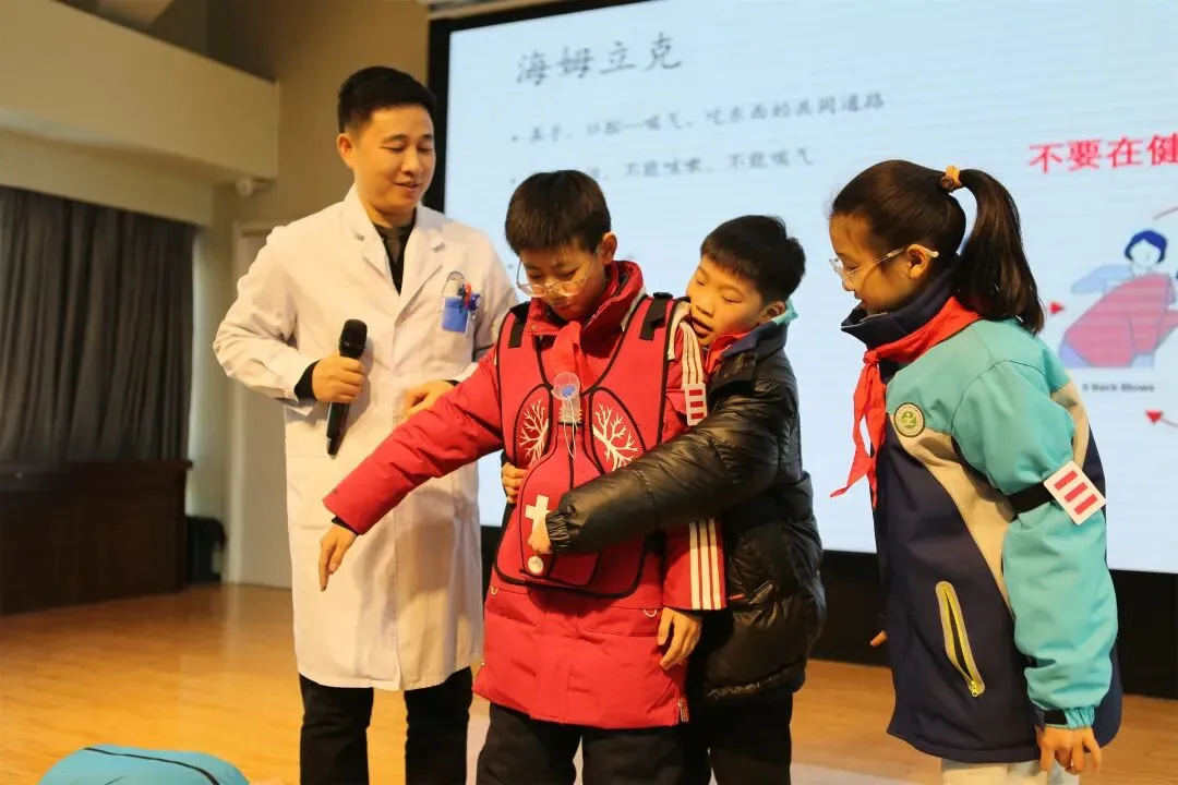 “以前只听说过海姆立克急救法,今天跟着陈医生边学边练,终于精准掌握了操作要领,以后遇到紧急情况也能沉着应对了!”一名少先队员代表兴奋地分享学习收获。党员教师们以主题党日学习为契机,主动扛起校园安全传播责任,一位教师坦言:“冬春之交气候干燥,低年级学生自我保护能力较弱,流鼻血、烧烫伤等意外时有发生,部分家长的处理方式不够规范,容易造成二次伤害。接下来,我会借助班队课、家长会等平台,把今天学到的急救常识传递给更多家长和学生,让‘人人学急救、急救为人人’的理念落地生根。”