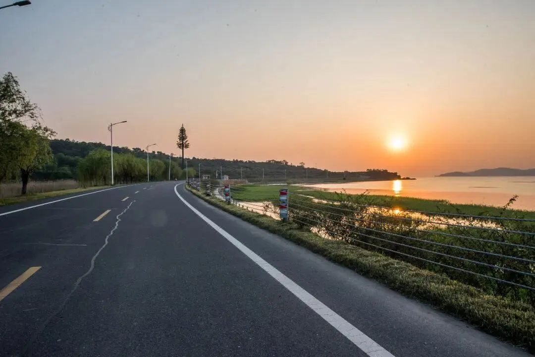 满满日系风,仿佛一秒穿越到日本镰仓 。沿着公路漫步,远眺太湖,水天一色。傍晚时分,在这里捕捉一场浪漫夕阳,金色的余晖洒在湖面上,波光粼粼,随便一拍都是大片。