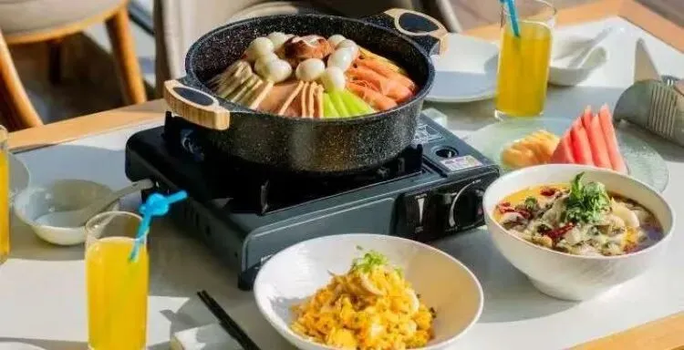 部分套餐还提供全家福暖锅一份,参考菜单:全家福暖锅、银鱼炒鸡蛋、浓汤酸菜鱼、时令水果、橙汁*3(具体以酒店当日出品为准)
