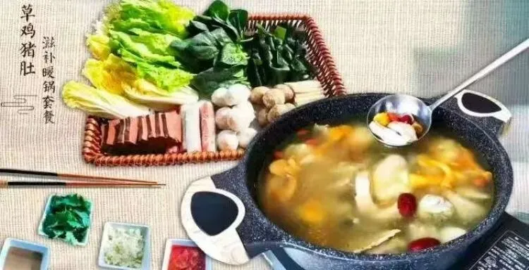另外还有羊肉火锅/草鸡猪肚锅二选一,参考菜单:羊肉火锅含羊肉片、蔬菜拼盘;草鸡猪肚锅含草鸡、猪肚、蔬菜拼盘(具体以酒店当日出品为准)