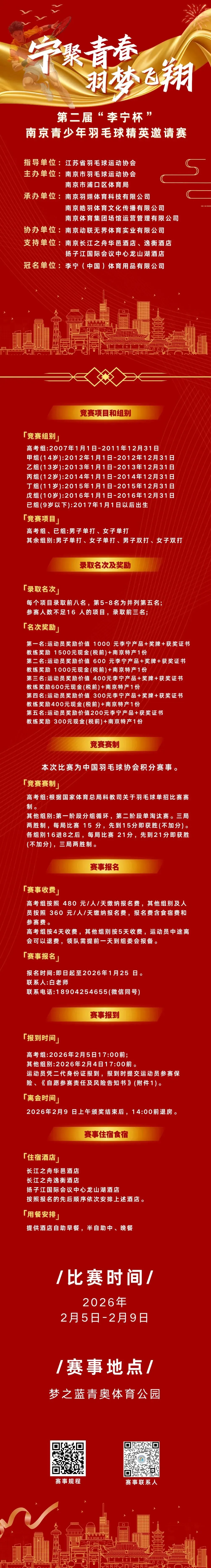 【南京2.5-9】第二届“李宁杯”南京青少年羽毛球精英赛邀请赛等你来战