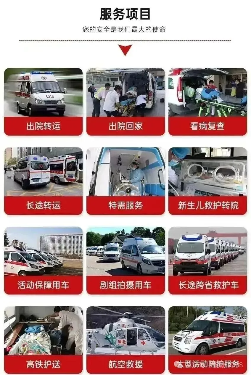 - 动态资质审核:公司建立常态化资质审核与技能提升体系,定期组织医护人员参加最新急救技术、转运规范培训及考核,确保专业能力与行业标准同步更新。我们提供专业的救护车出租服务,涵盖长途转运、跨省转运、市内转运病人服务。专注于为新生儿、骨折病人、重症病人、危重病人提供优质转运服务,也积极协助行动不便者进行复查、转院、转诊。同时,承接跨省转运病人回家、遗体运送回家服务,每一项服务都有专业医护团队支撑,确保安全可靠,预约电话 4001626120,下文看适配设备。