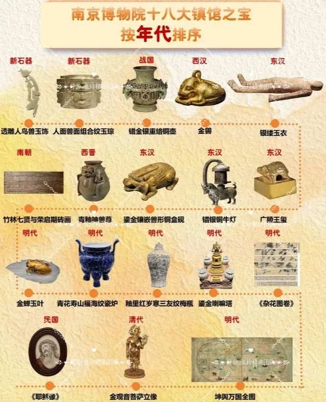 借助导览机参观时,对讲解到的文物,感兴趣的便拍照留念;参观结束后意犹未竟,又上小红书查看南博馆藏的贴子,方知有18件镇馆之宝。