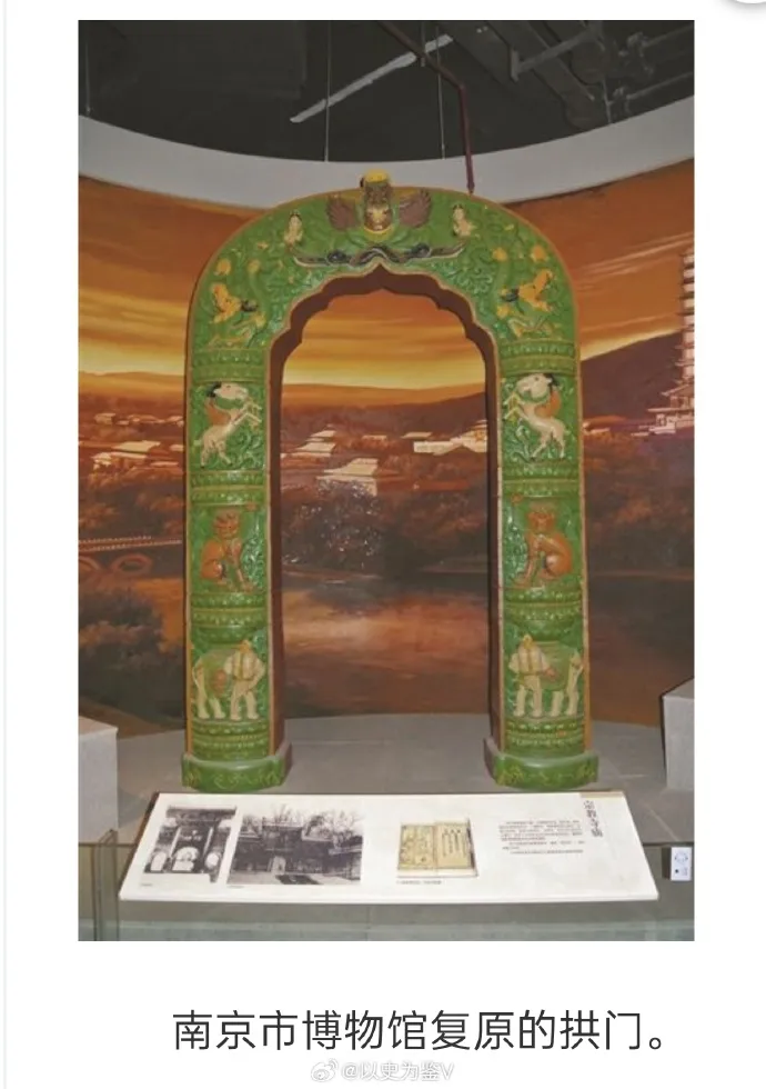 位于朝天宫的南京博物馆所复原的拱门,对比原件,确实是多了一截狮子。南博这种对待文物不负责任的态度及低劣管理水平,作为老南京,甚感丢人