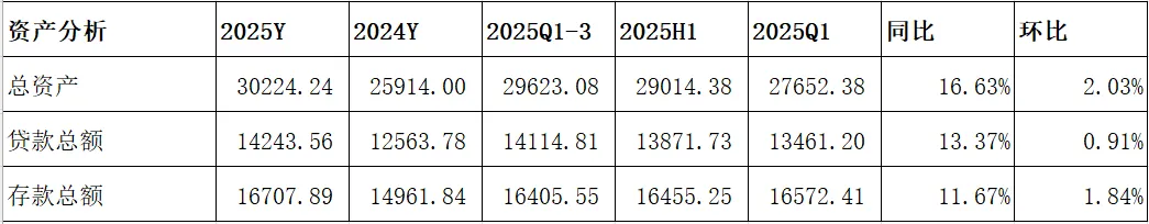 分析:如上图所示,总资产同比增长16.63%,环比增长2.03%;贷款总额同比增长13.37%,环比增长0.91%;存款总额同比增长11.67%,环比增长1.84%;