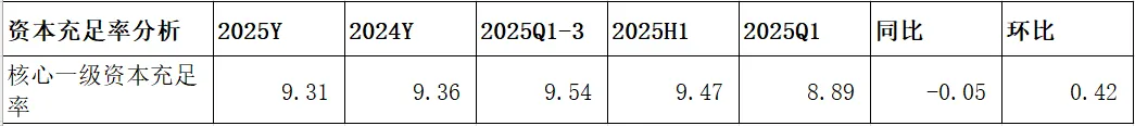分析:如上图所示,根据归属于本行普通股股东的基本每股收益乘以分红占利润比,计算出归属于每股分红金额。假如2025年分红占利润比和去年保持一致,从而计算出每股分红金额0.537元,同比下降3.83%,主要受每股收益同比增长影响导致。按2026年1月22日收盘价10.42元,计算出来股息率5.15%,明显高于银行一般理财收益率。
