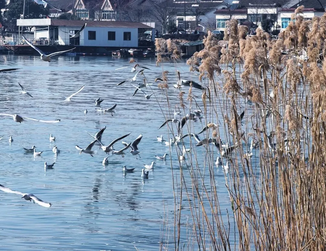 ● 渔港村:红嘴鸥聚集的核心区域,能近距离邂逅鸥群在湖面翻飞、争食嬉戏的鲜活画面,湖边渔船错落,渔村烟火气与鸥鸟灵动相融,沉浸式感受太湖边的渔家风情。