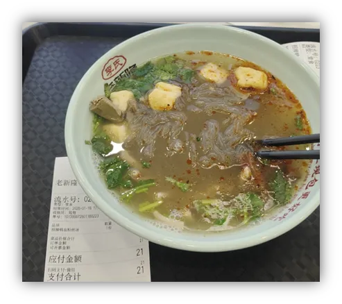 等到晚上的时候我们在商场前集合,大家都很累,不想再继续奔波。走了一段路后,在附近的一家店里吃了当地特色——鸭血粉丝汤,味道不错,但是好像又感觉没什么特别的,小笼包倒是很鲜。