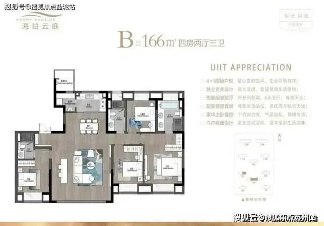 昆山海珀云庭售楼处电话☎:400-8828-814(售楼处预约看房热线)相较于142㎡户型,建面约166㎡户型改善更纯粹!四开间朝南+户户飘窗设计,采光面充沛,6m宽厅视野无遮挡;厨房连接家政间,家务动线合理;双套房设计,居住舒适度更高。