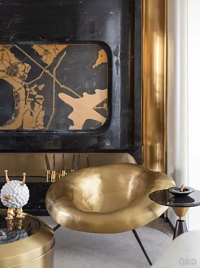 上空间当中的材质与细节更能够感受到客户的内心世界。似乎上方更是追逐名利的设计格调,而下方便是脚踏实地的辛勤劳作。