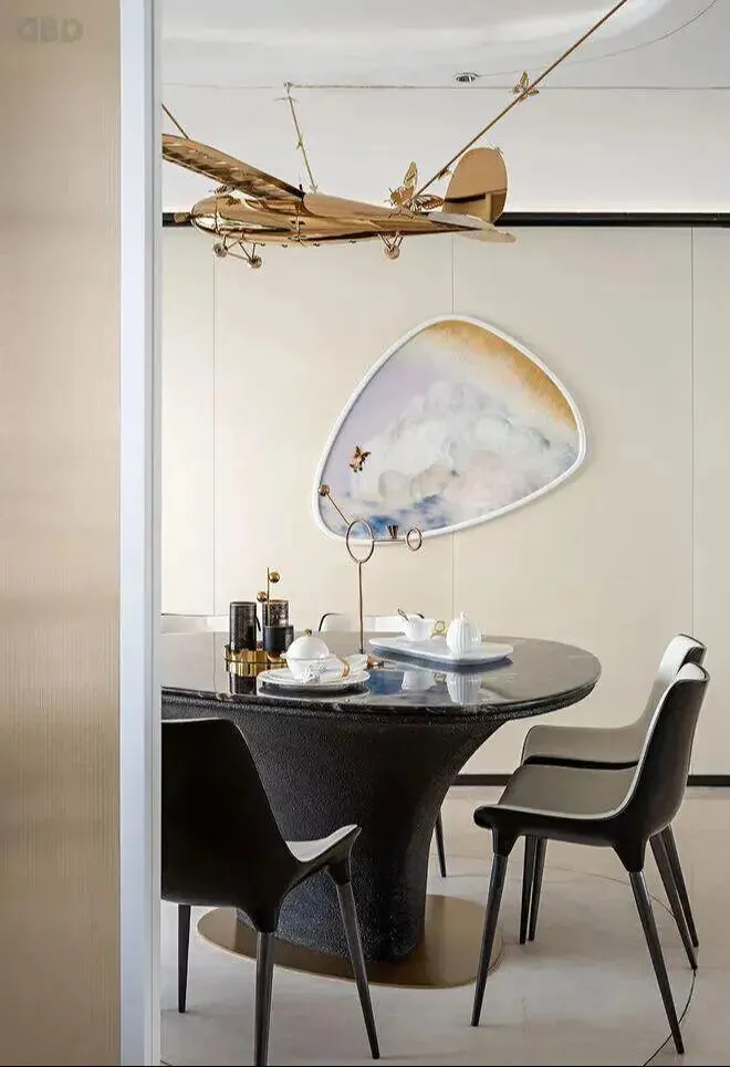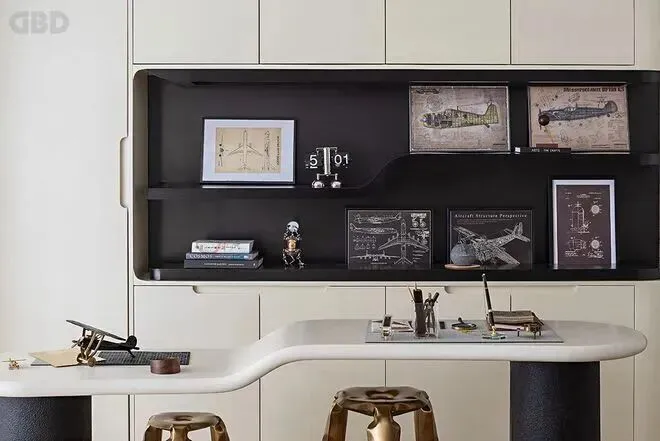 The integration of interior design and architectural aesthetics reveals the delicate spatial structure in the space. The aircraft haze map on the niche and the aircraft model on the table seem to be more able to feel the infinite dreams in the space.
