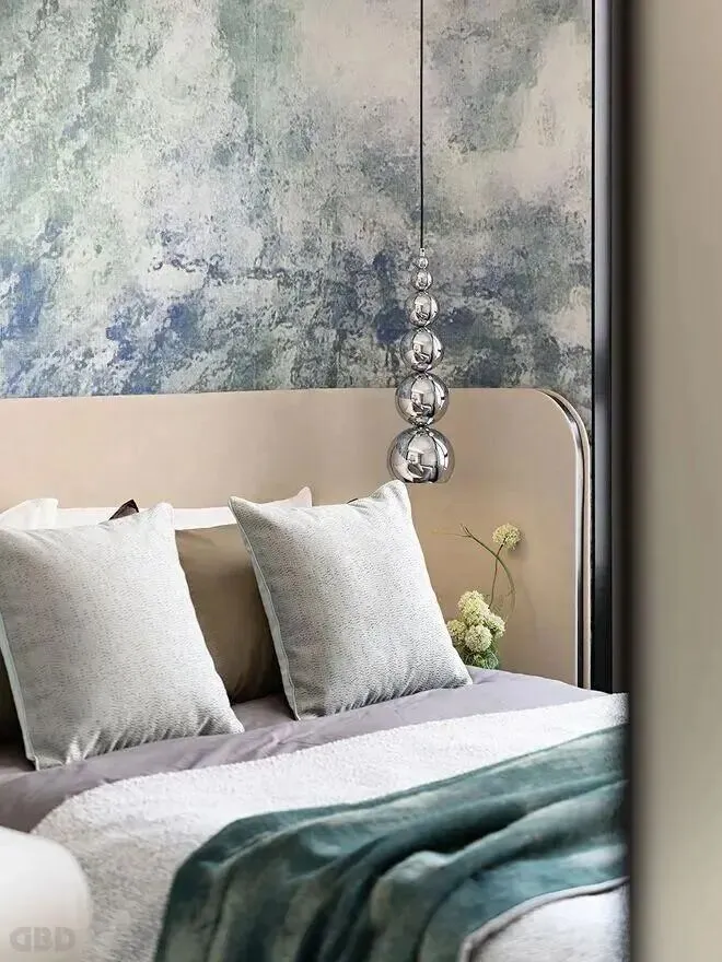 There are not too many decorations in the bedroom, and I draw the theme with exquisite background words. Below the colour of the space foil, it seems to also can feel the comfort in the space.